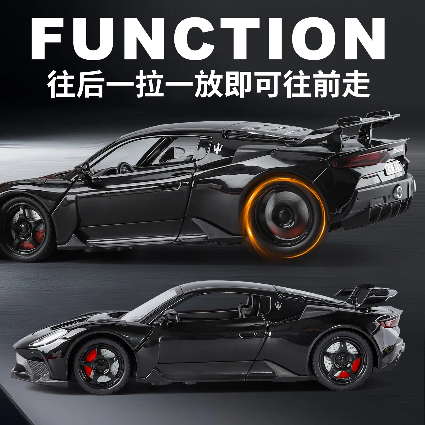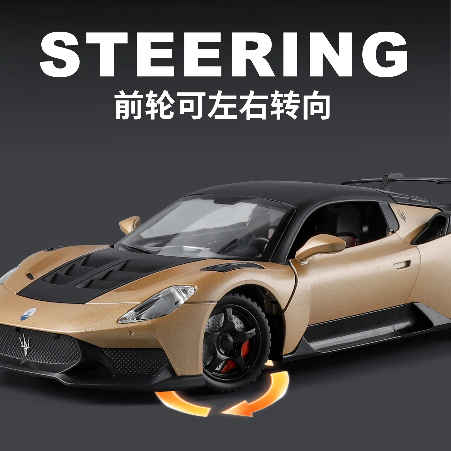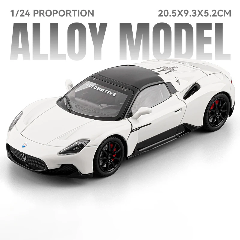 Experience the thrill of high-performance design with this 1:24 scale diecast model of the Maserati GT2 MC20 Supercar. Crafted from durable alloy metal, this realistic miniature features a glossy black finish with sleek aerodynamic lines, detailed rear spoilers, side mirrors, roof vents, and taillights. Small wheels with black rims enhance its refined appearance, making it an ideal collectible or desktop decoration. Available in vibrant colors such as grey, white, blue, green, gold, red, and more, this high-simulation model is perfect for enthusiasts aged 14 and above, capturing the essence of the iconic supercar with meticulous craftsmanship.
