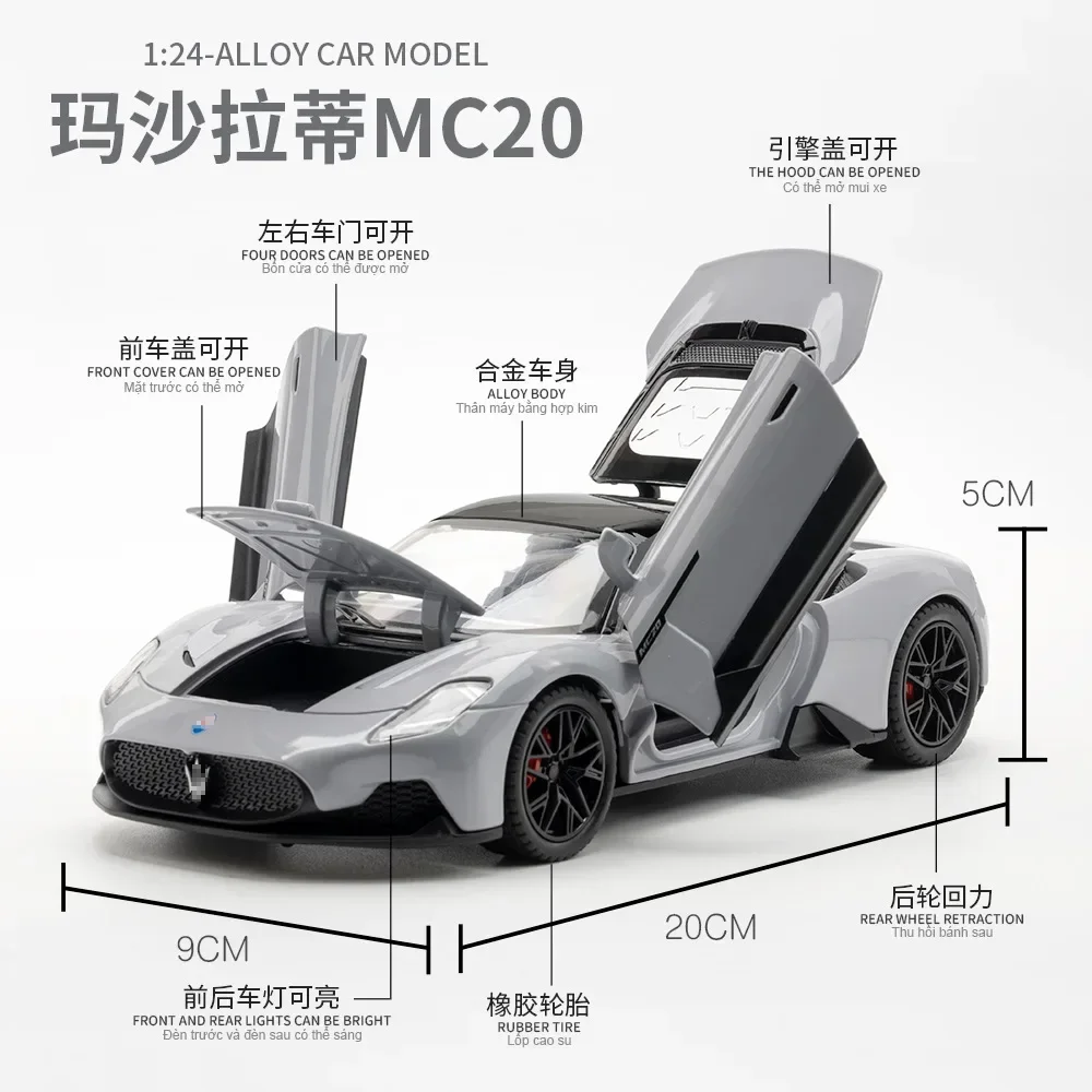 Experience the thrill of precision craftsmanship with the 1:24 Maserati MC20 sports car diecast model. Crafted from high-quality metal alloy, this detailed replica captures the sleek design and dynamic essence of the legendary sports car. Available in grey, green, and blue, it’s an ideal collectible for enthusiasts and adult collectors alike. Perfect for display or gifting, this meticulously detailed model invites you to imagine owning a piece of high-performance automotive excellence. Elevate your collection today with this stunning replica, designed to inspire admiration and capture the exhilarating spirit of the Maserati MC20.