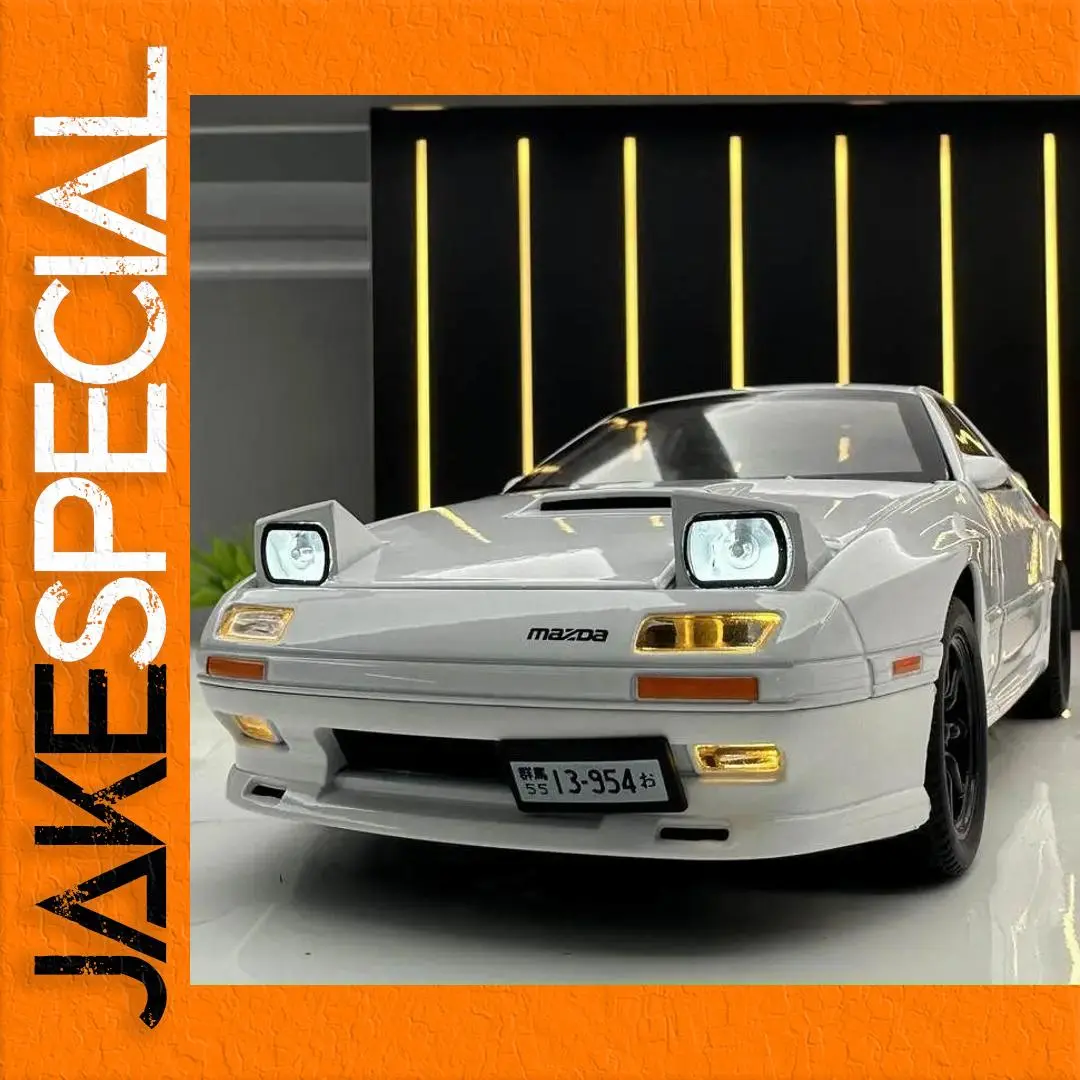Experience the detailed craftsmanship of this 1:24 scale alloy Mazda RX-7 sports car model, crafted from diecast metal and plastic. Featuring a glossy white or vibrant yellow finish, this collectible captures the iconic curves and aerodynamic design of the real vehicle. The model includes realistic pop-up headlights with bluish-white illumination, orange turn signals, and yellow accents near the grille. Its textured black alloy rims and sculpted side mirrors add to its authenticity. Suitable for enthusiasts and collectors aged 4 and up, it offers simulation sound and light functions, making it an engaging display piece or a cherished gift for adult collectors who appreciate fine miniature engineering.