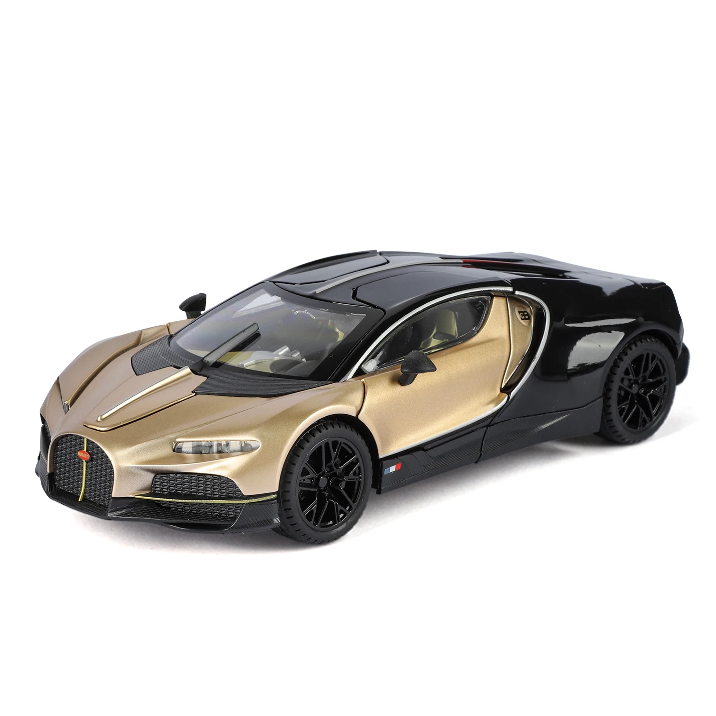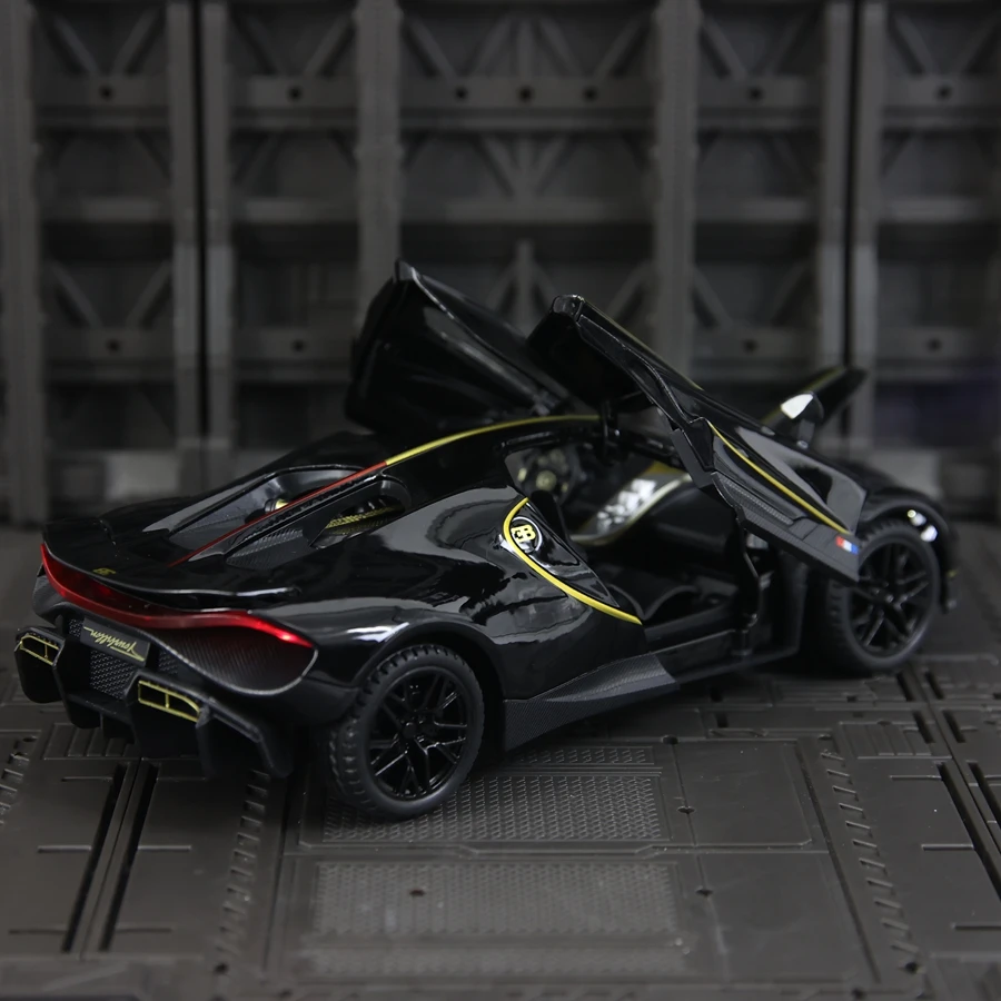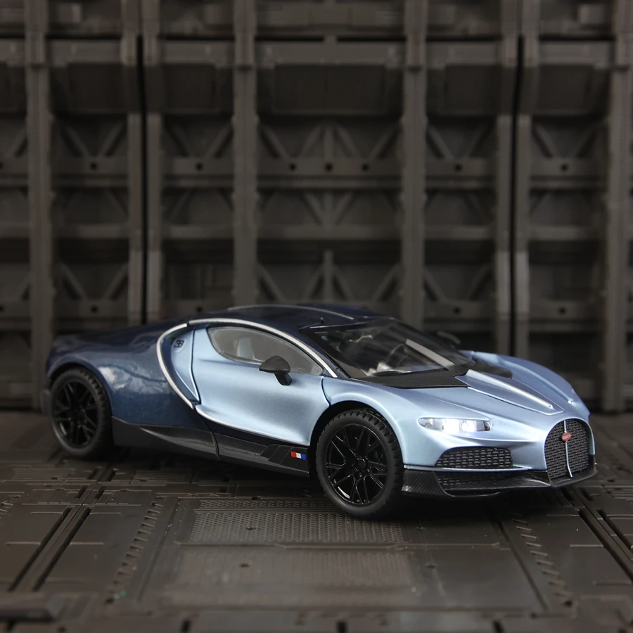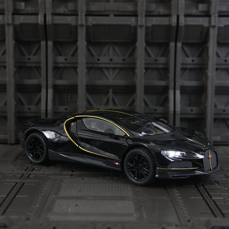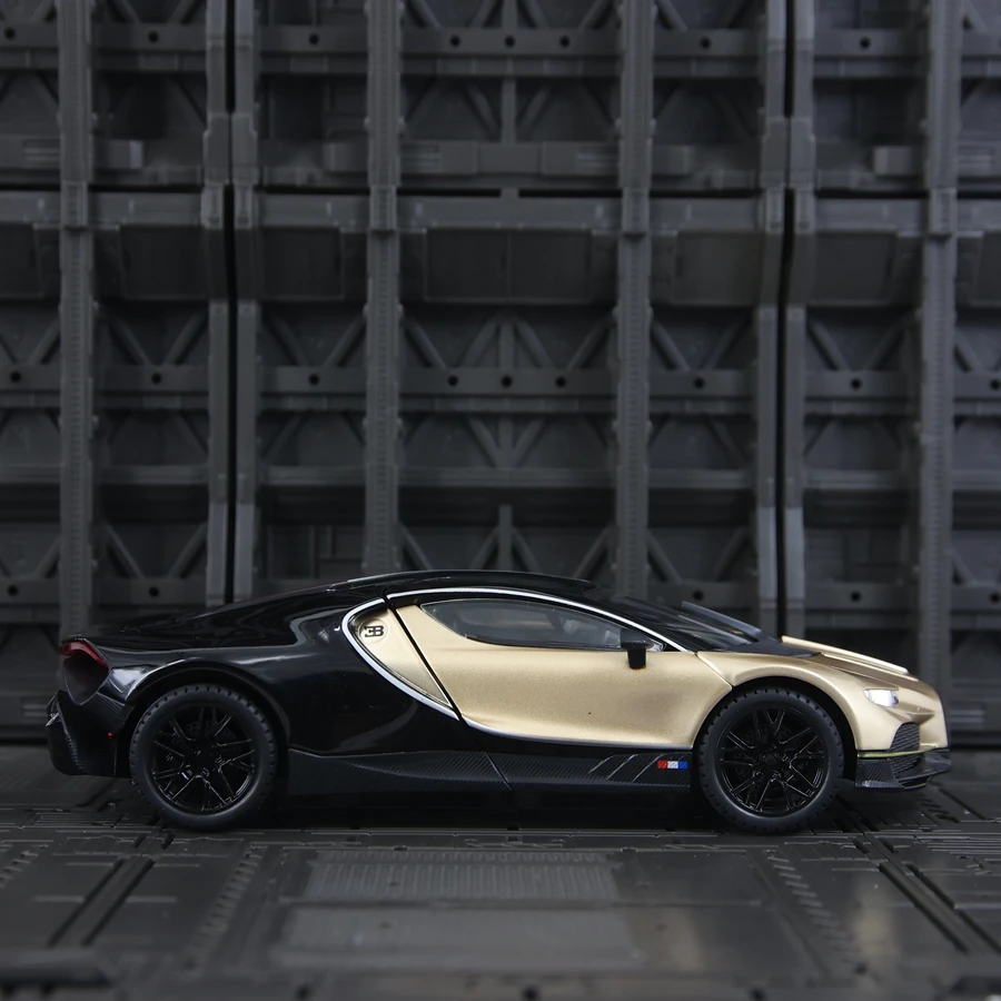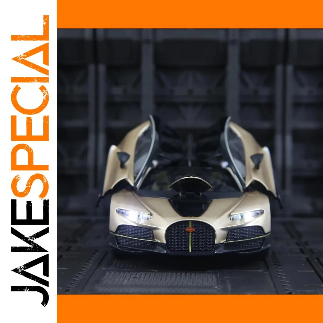 Experience the thrill of luxury with this 1:24 scale diecast model of a supercar, expertly crafted from high-quality alloy in a striking metallic gold or champagne finish. Featuring detailed, flowing body lines, a prominent oval black honeycomb grille with a central emblem, slim LED headlights, and gullwing doors that open smoothly, this model captures the essence of high-performance design. It includes functional steering, shock absorbers, a rear power mechanism, and doors that add to its realism. Suitable for collectors aged 14 and above, it operates with button batteries and is finished with precise craftsmanship and CE certification, bringing sophistication and excitement to any display.