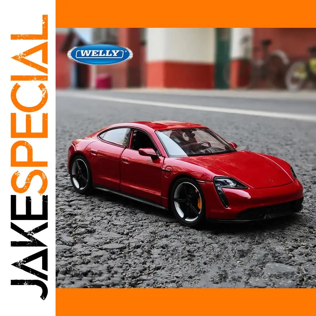 - Authentic 1:24 scale diecast model, with metal alloy and plastic components, reproduces the sporty design of the Porsche Taycan Turbo S with precise detailing.