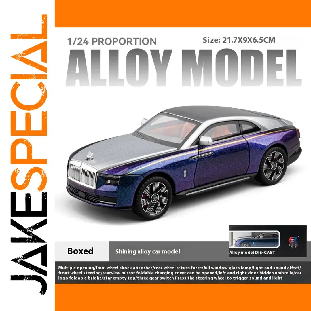 Experience the elegance and craftsmanship of this highly detailed 1:24 scale diecast model of a luxury coupe sports car. Designed with a sleek, aerodynamic profile, the deep, shiny purple finish with a metallic sheen immediately captures attention. Silver accents on the roof and side mirrors, along with black window trim and a subtle gold line along the side, create a sophisticated contrast. The front features a prominent grille with vertical slats and streamlined headlights, while multi-spoke wheels add to its realism. Carefully crafted doors, detailed side mirrors, and transparent windows reveal the intricately designed interior, making this model perfect for display or collection. Bring this exquisite piece home and elevate your collection with its high simulation quality and elegant aesthetics.