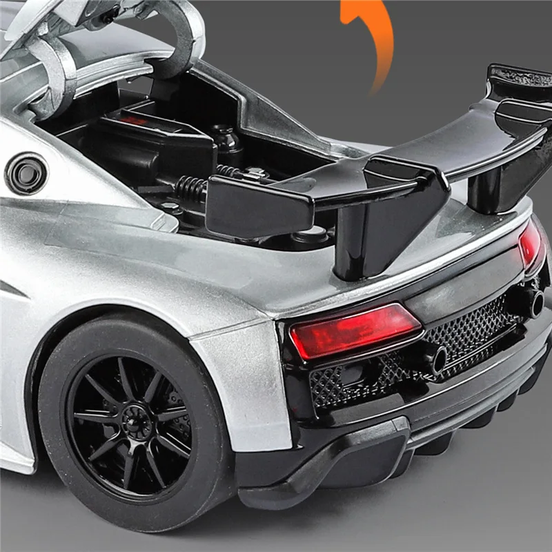 This exceptional 1:24 scale diecast model of the R8 LMS GT2 sports car is a must-have for collectors and enthusiasts alike. Dressed in a stunning silvery finish, this model captures the sleek and aggressive design of its real-life counterpart. With intricate detailing including air intakes, a prominent front grille finished in darker accents, and black alloy wheels, this model is impressively realistic. Designed not just for display, it boasts exciting sound and light simulation features to bring your racing fantasies to life. Whether you’re showcasing it on your shelf or gifting it to a fellow car enthusiast, this model is sure to leave a lasting impression.