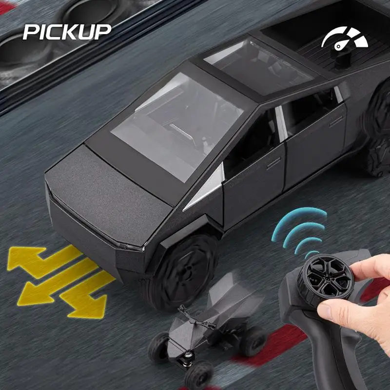 Experience the thrill of owning a highly detailed 1:24 scale remote-controlled off-road SUV pickup that combines rugged durability with sleek modern aesthetics. Crafted from a sturdy metal alloy die-cast body, this model boasts a metallic finish available in sophisticated grey or silver tones, perfect for outdoor adventures or display. Its angular, boxy design with sharp, clean lines captures a contemporary, rugged appeal. The vehicle features deep-tread off-road tires mounted on robust multi-spoked rims, emphasizing its outdoor capability. With a flat hood, slim LED headlights, and a defined pickup bed, this miniature truly mimics its full-sized counterpart. The included remote offers a control range of 25 meters, making it ideal for outdoor exploration.