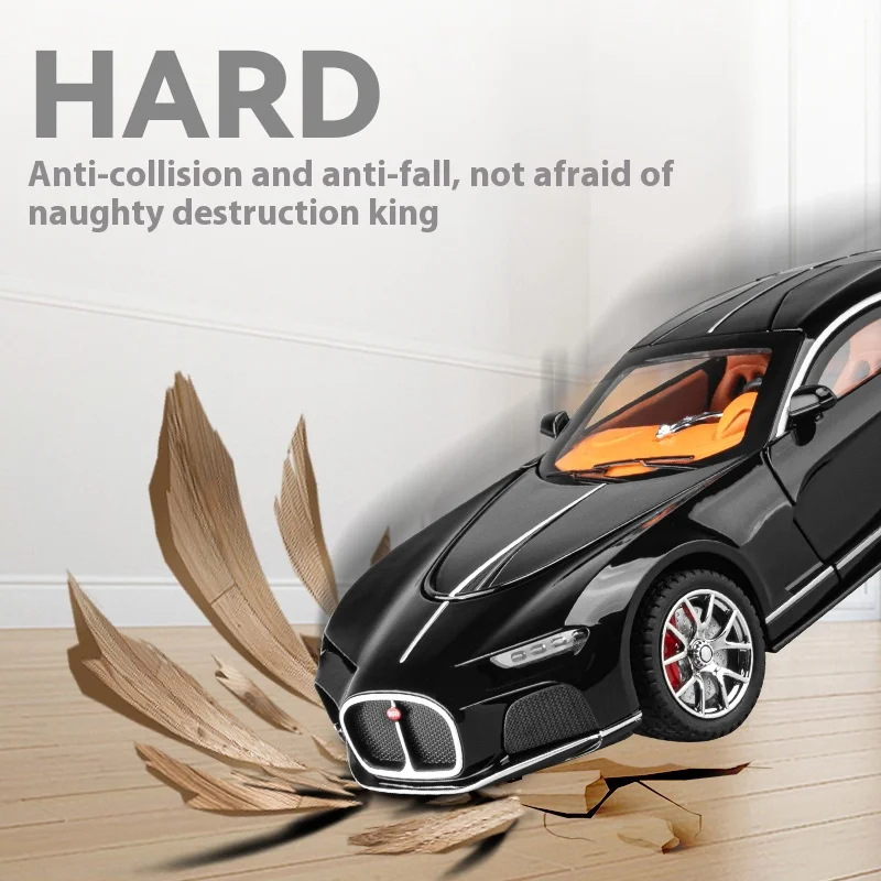 Indulge your passion for high-quality collectibles with this stunning 1:24 scale alloy model sports car. Showcasing a sleek black finish, it exemplifies modern automotive elegance through its smooth, aerodynamic lines. The model features intricate details like a distinctive grille, aggressive headlights, and a luxurious interior with orange leather-like material, inviting you to imagine owning this piece of art. With soft lighting and simulated sound effects, it truly comes to life, providing an immersive experience for car enthusiasts and collectors alike. Built for durability, this model is collision and fall-resistant, making it suitable for display or play.