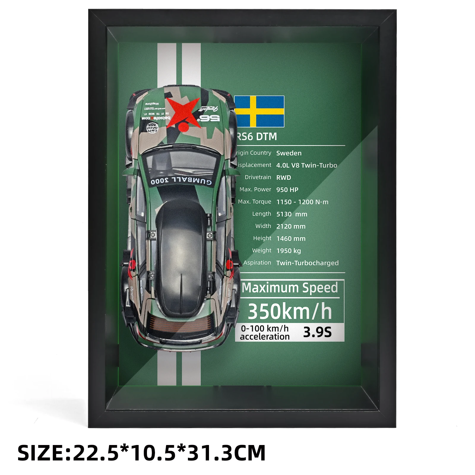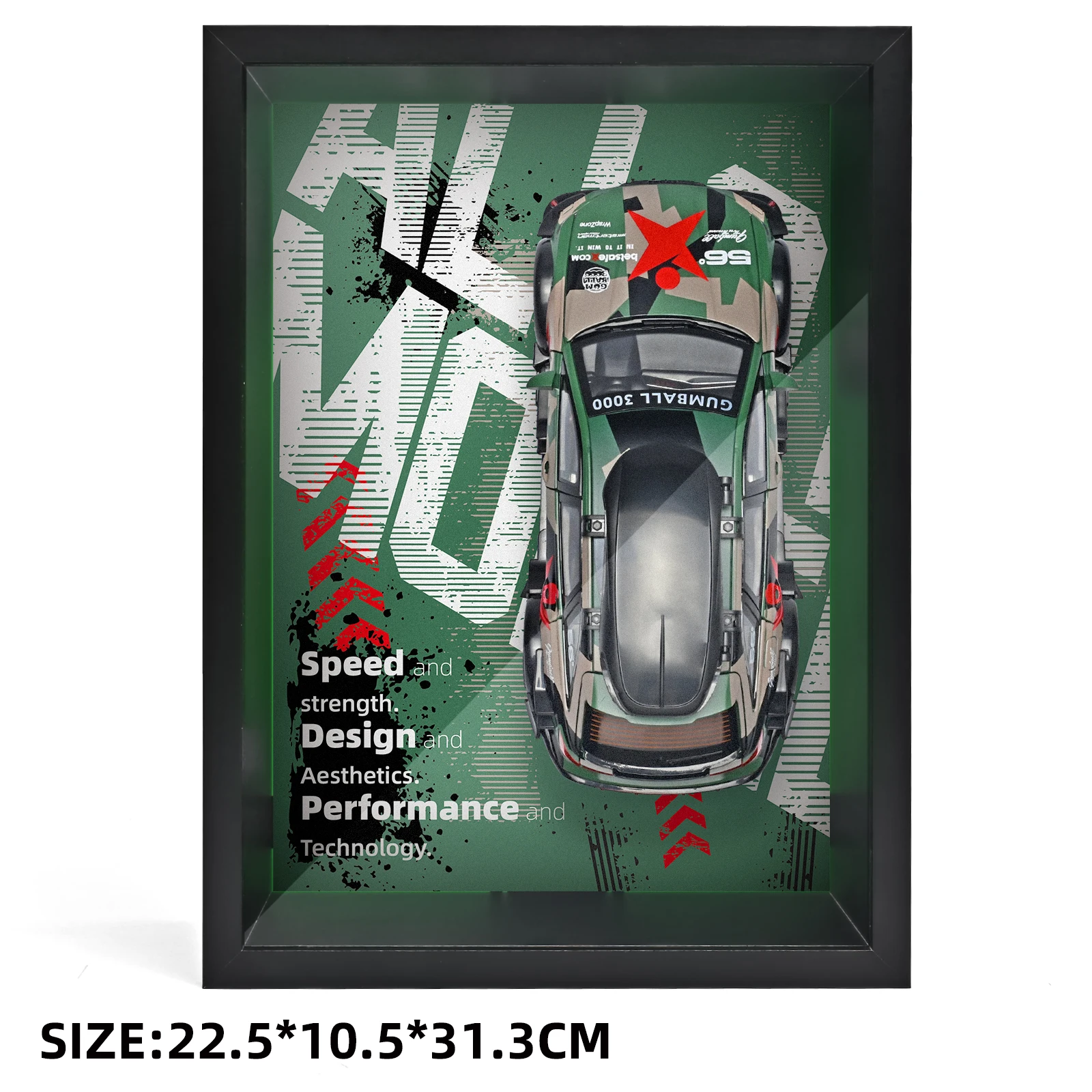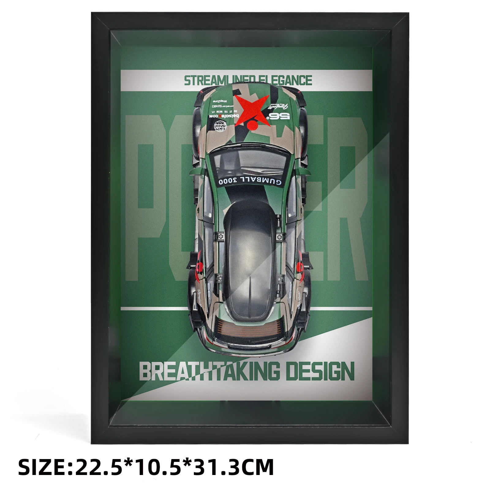 - The car measures perfectly for a photo frame or display case, with detailed airflow vents, side mirrors, grille, and racing-inspired accents that highlight craftsmanship and realism.