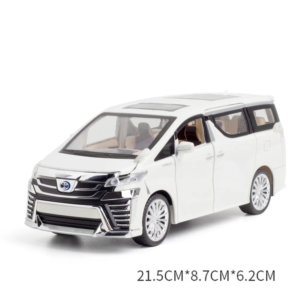 Step into the world of detailed miniature vehicles with this high-simulation 1:24 scale Alphard Vellfire model car, perfect for collectors or imaginative play. The sleek design features a pristine white finish that captures a modern, sophisticated aesthetic. The alloy metal body combines durability with a realistic appearance, complemented by plastic chassis and rubber tires that provide an authentic touch. Designed with meticulous attention to detail, the model includes functional opening doors, engine hoods, and trunks, adding an interactive element. Its compact size of approximately 20.5 x 9 x 7.5 cm for Alphard and 21.5 x 8.7 x 6.2 cm for Vellfire makes it easy to display or transport. With sound and lighting features, pull-back movement, and shock-absorbing wheels, this model combines realism with durable fun. Whether for display or play, it brings a touch of upscale automotive detail to any collection or space.
