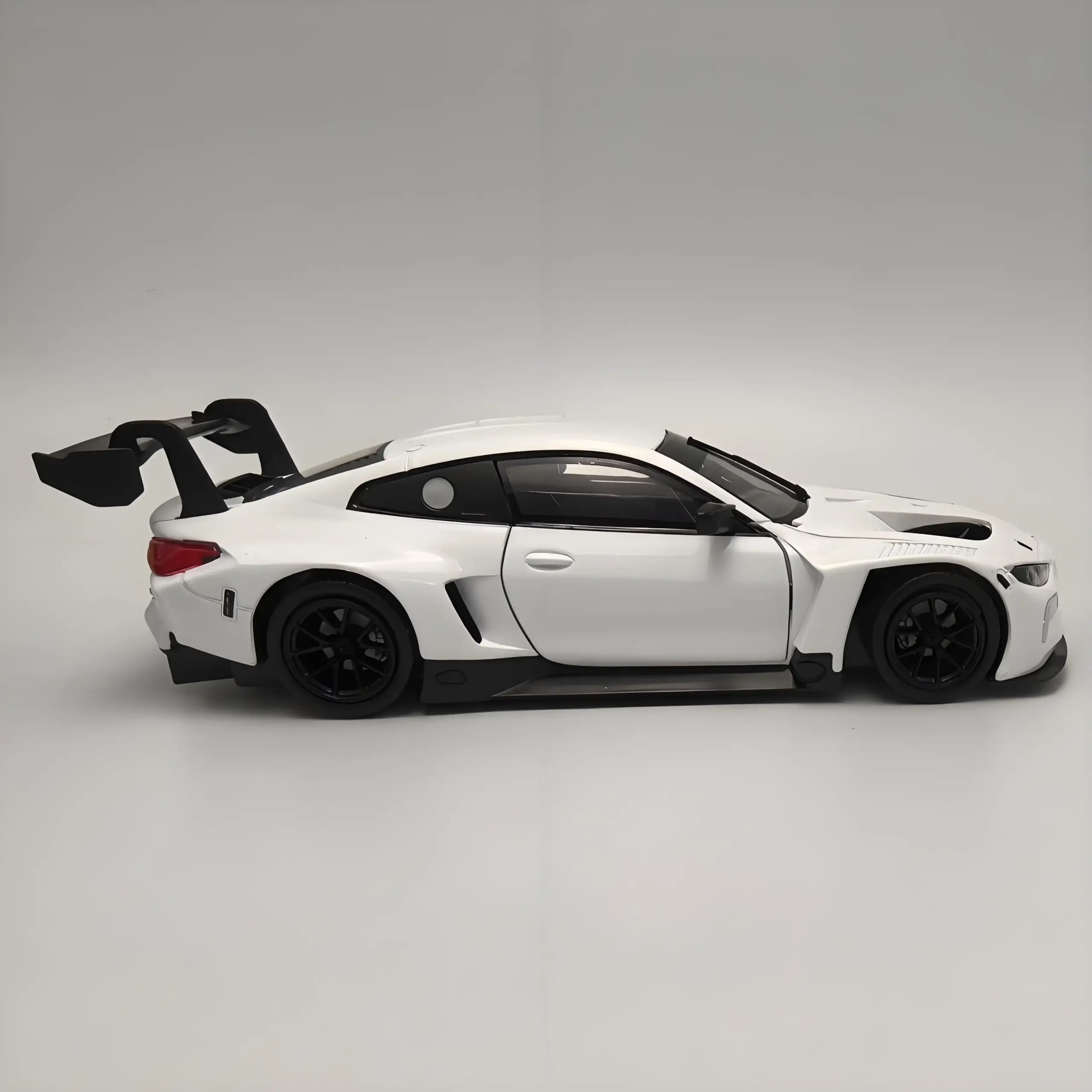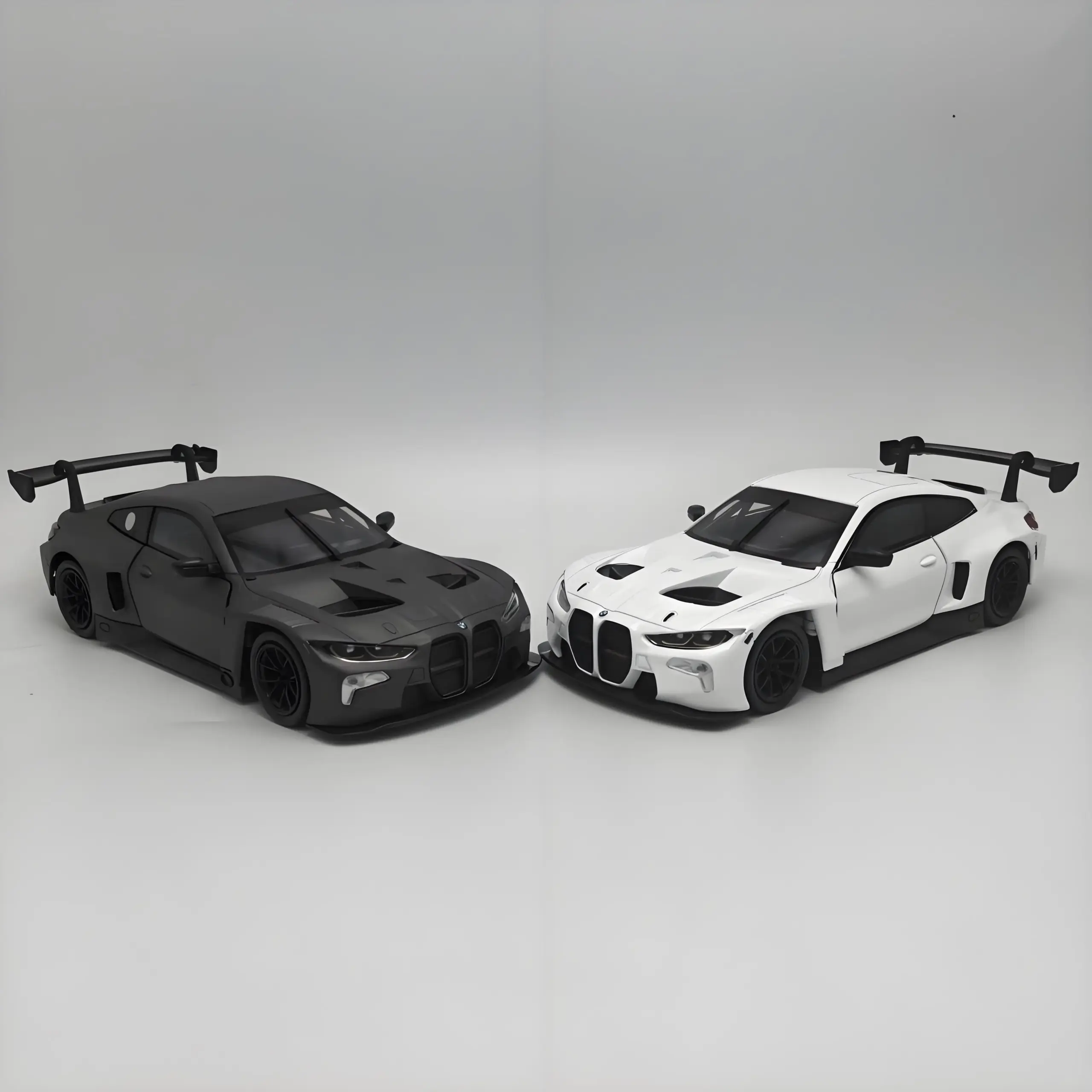 This stunning 1:24 scale diecast model of the BMW M4 GT3 supercar is available in two striking colors: a matte black finish and a glossy white option. Crafted from durable alloy and plastic materials, each model features an aggressive design with pronounced front air intakes, sleek body lines, and an aerodynamic rear wing. Detailed components like hood vents and side mirrors enhance the racing aesthetic, while the sporty black wheels complete the look. This model is perfect for collectors and enthusiasts looking to add a touch of automotive excellence to their display. Enjoy the beauty and craftsmanship of this remarkable racing car replica!