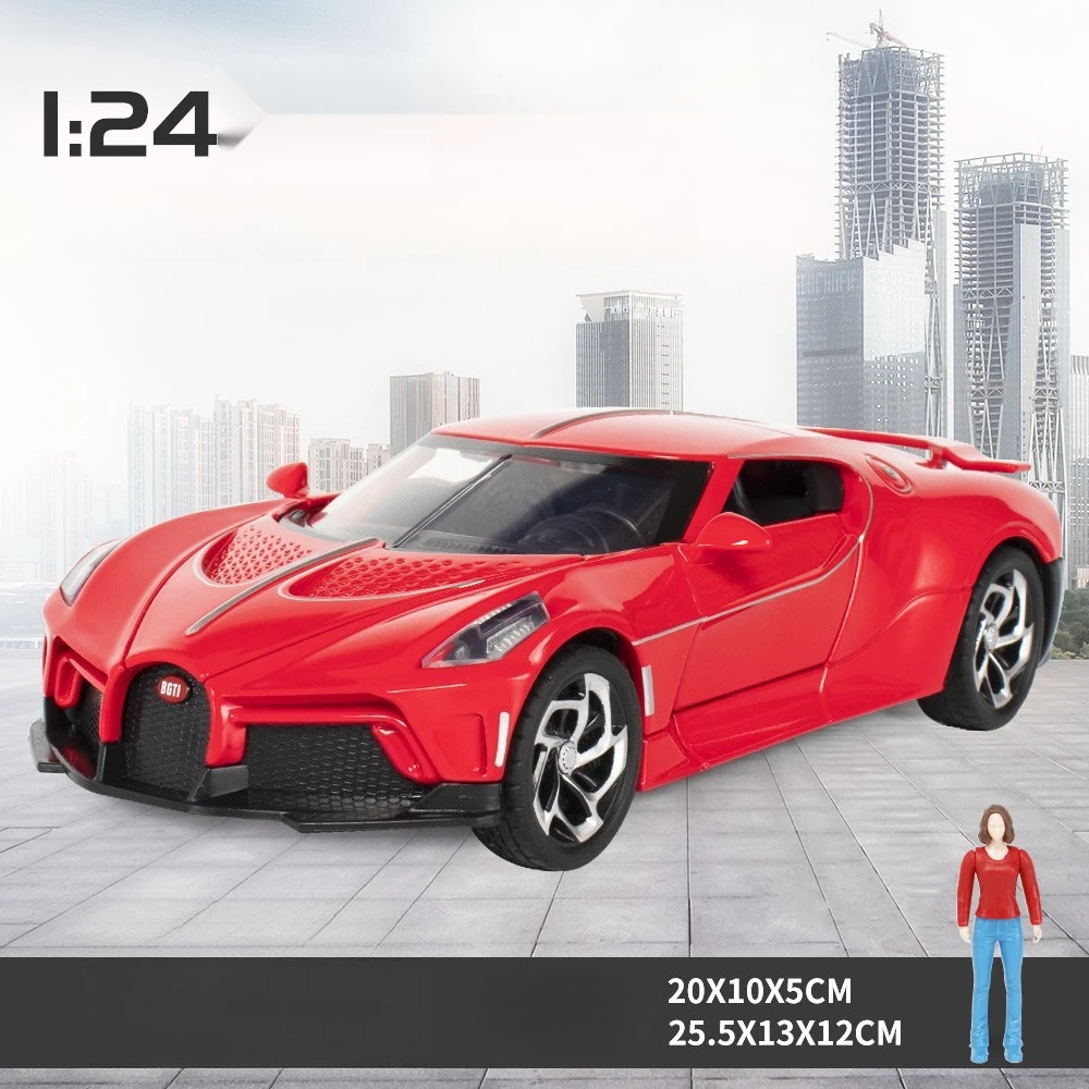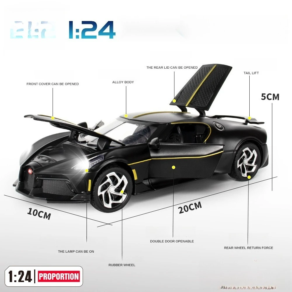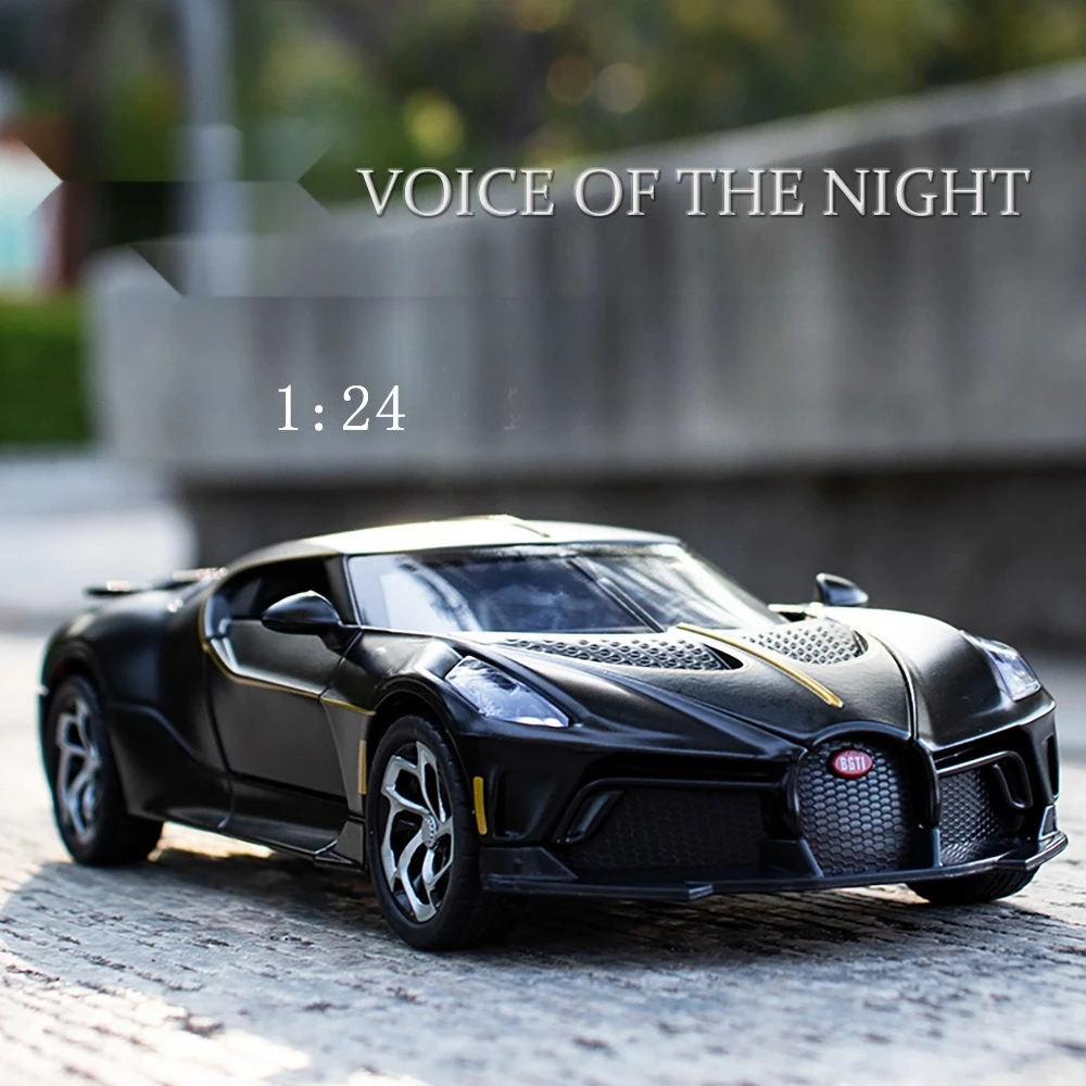 - Scale at 1:24, offering a highly detailed and realistic miniature of the Bugatti La Voiture Noire sports car. Crafted from durable metal for long-lasting display or play. Suitable for adult collectors and enthusiasts.