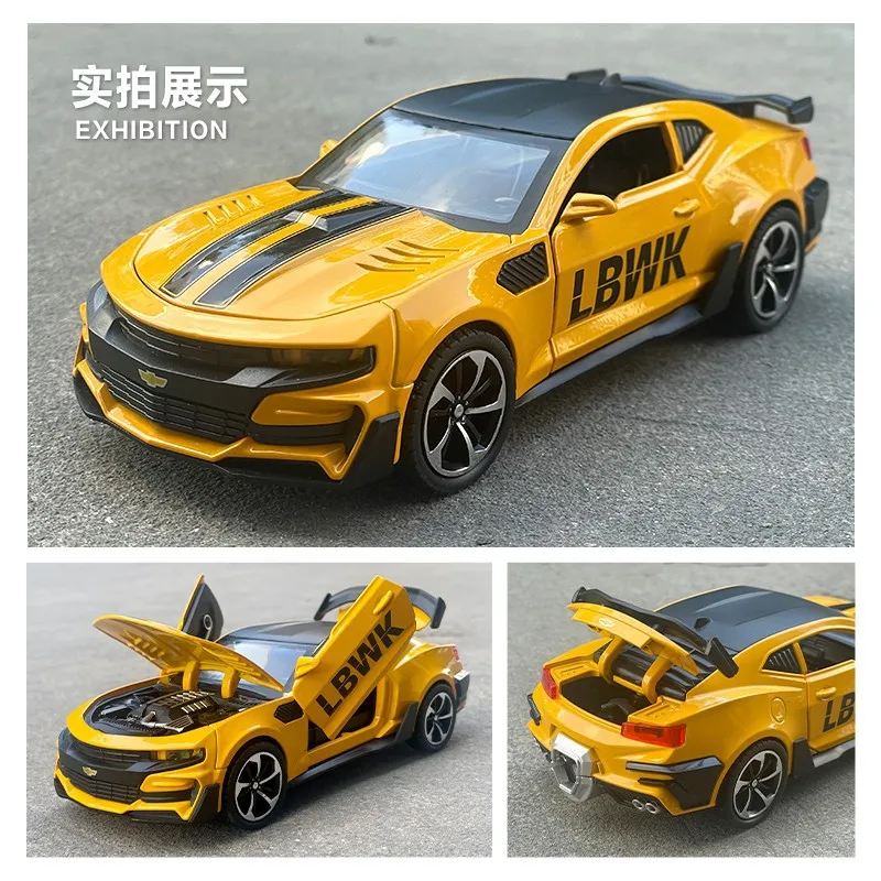 Experience the thrill of automotive excellence with this stunning 1:24 scale Bumblebee alloy car model. Drenched in vibrant yellow with striking black accents, it features an aggressive style complete with a bold grille, sporty bumper, and dynamic stripes. Designed for display and play, this model includes sound and light functions for an immersive experience. Whether you're a collector or an enthusiast, its detailed interior and pull-back mechanism elevate its value. Crafted from durable metal and plastic, this car stands out with its captivating aesthetics, making it a perfect gift for ages 4 and above. Supervised play is advised due to small accessories.
