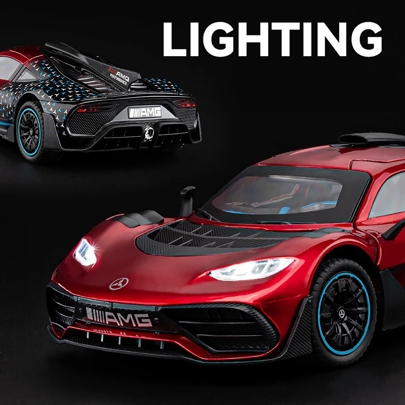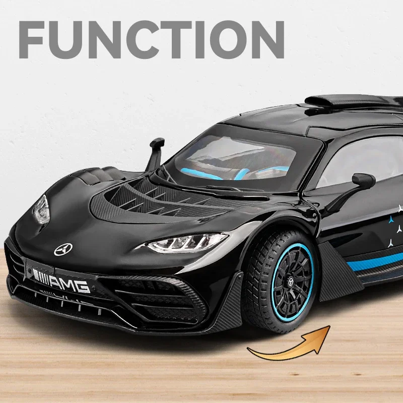 This stunning 1:24 scale die-cast sports car model combines sleek aesthetics with intricate detailing. Finished in a glossy black, its aerodynamic design features stylish vents and a striking patterned rear adorned with star shapes in various shades. Realistic headlights and a sculpted hood reflect high-quality craftsmanship, while larger black alloy wheels with filigree designs amplify its sporty allure. This model also showcases sound and light effects, enhancing your collecting experience. Crafted from durable alloy and plastic materials, it caters to a wide age range of enthusiasts (ages 4 to 18+), making it a perfect addition to any collection.