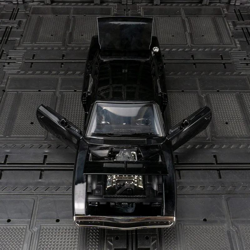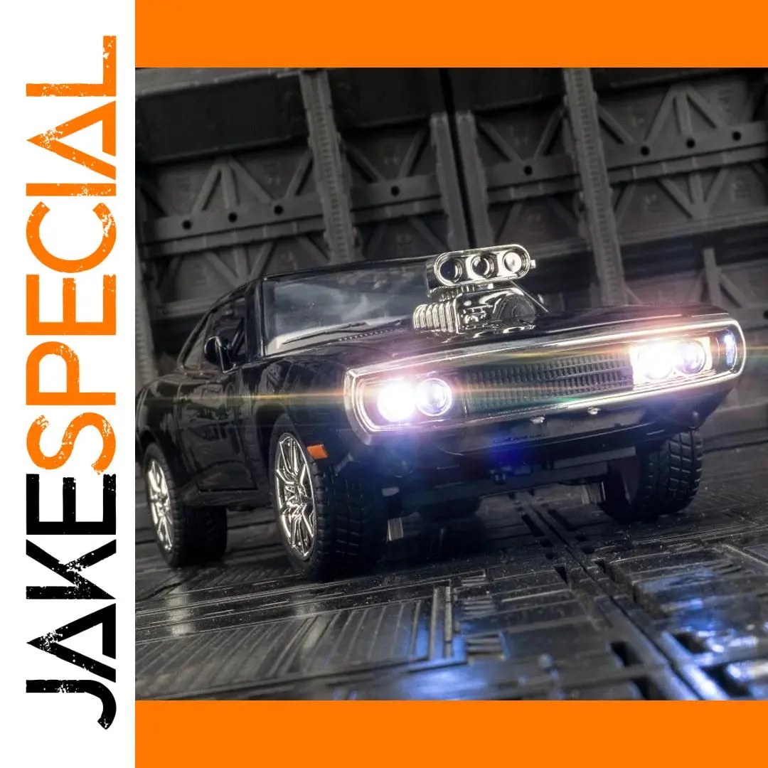 Experience the thrill of the classic 1970 Challenger with this detailed 1:24 scale diecast model, crafted from alloy metal in a sleek black finish. Featuring realistic sound and light functions operated by button batteries, this high-quality replica showcases an aerodynamic body, bold front grille with multiple horizontal bars, and illuminated bright white headlights. The exposed chrome supercharger with a large intake scoop and cooling fins adds an aggressive, high-performance touch. Intricate alloy-inspired wheels with rugged tires complete its authentic appearance. Perfect for collectors and enthusiasts, this CE-certified display piece captures the essence of muscle car power and style in stunning detail.