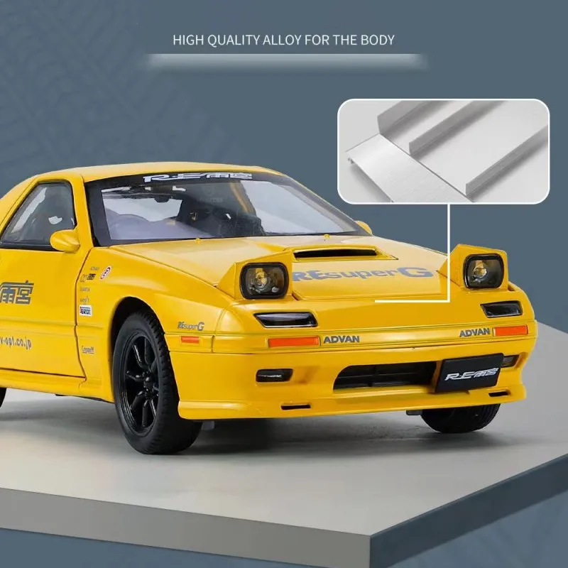 - Authentic 1:24 scale replica with detailed aerodynamic design, including smooth curves, sharp lines, and iconic features of the original RX-7.
