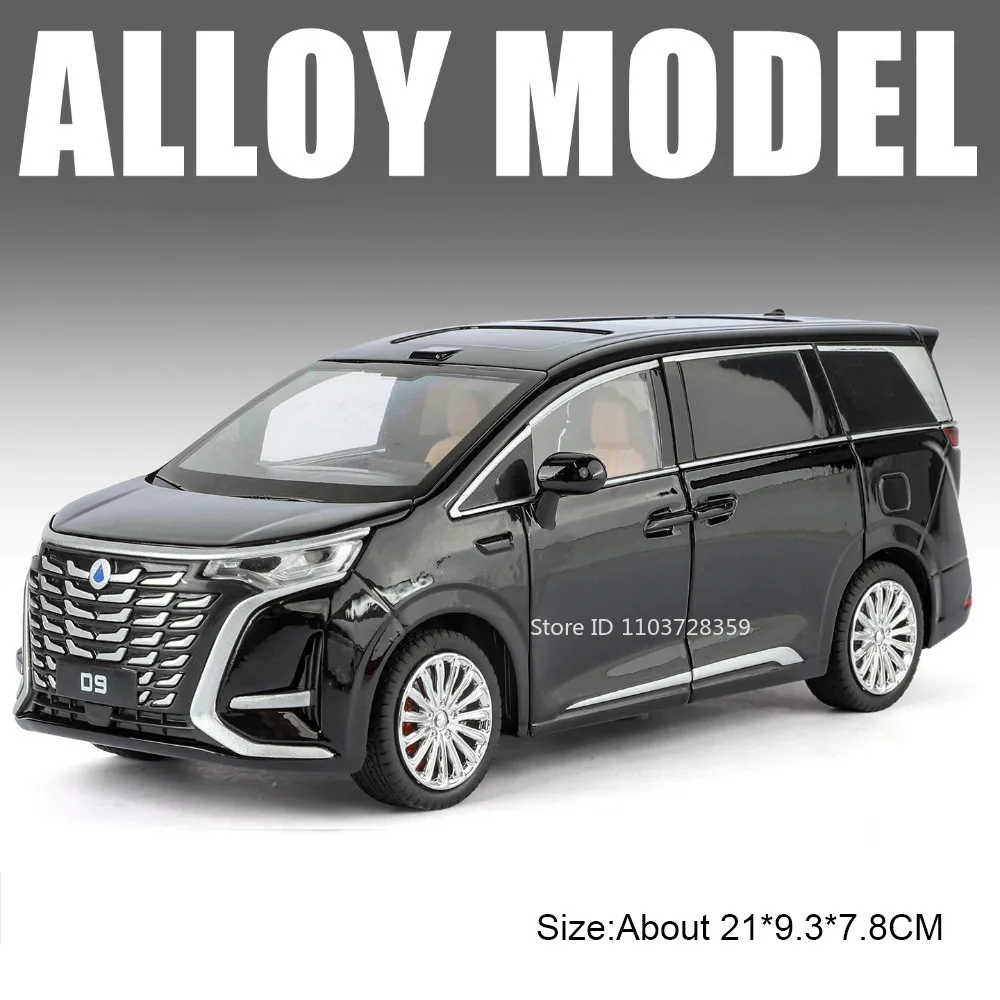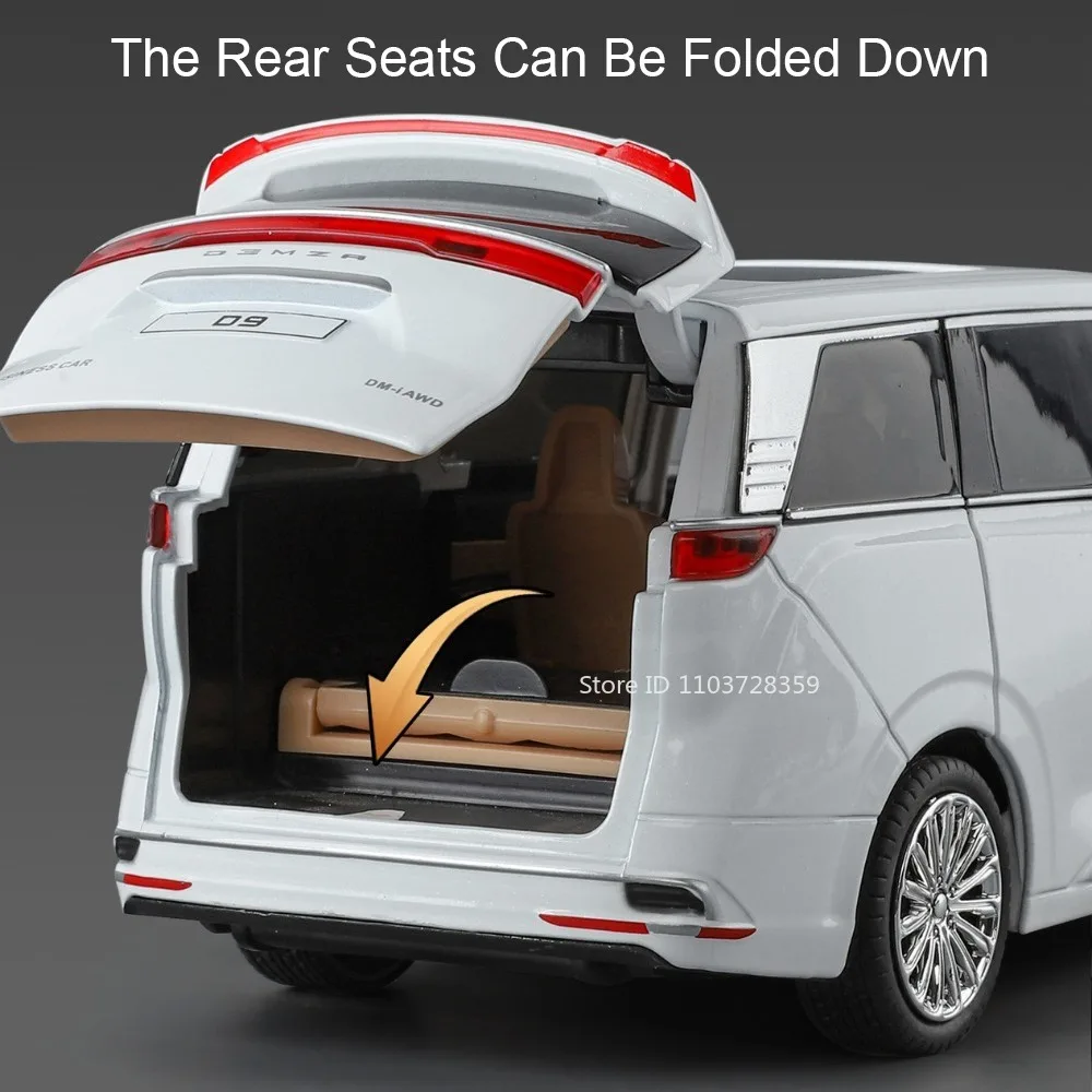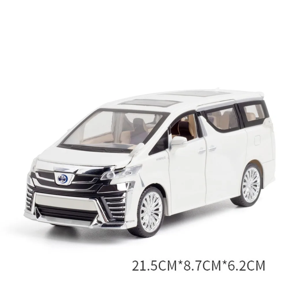 Experience realism and durability with this 1:24 scale diecast car model, available in D9 White, D9 Black, Vellfire White, and Vellfire Black. Crafted with a metal body, plastic chassis, and rubber tires, it measures approximately 21 x 9.3 x 7.8 cm for the D9 and 21.5 x 8.7 x 6.2 cm for the Vellfire, offering a sleek, aerodynamic design. Features include openable doors, trunk, and engine hood revealing detailed interiors, along with sound and light functions activated by pressing the front cover or opening doors. The pull-back motor ensures smooth, automatic movement, making this high simulation vehicle an excellent collector’s item or gift for enthusiasts.