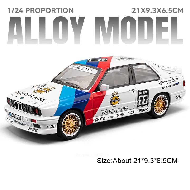 Experience the thrill of racing with this highly detailed 1:24 scale diecast model, expertly crafted from zinc metal, plastic, and rubber tires. Its sleek, aerodynamic design captures the essence of real racing cars, featuring bold racing stripes in vibrant red, blue, and black that run along the roof and sides. The polished surface highlights crisp decals and sponsor logos, while the realistic grille and headlight decals add authenticity. Black-tinted windows provide contrast, and gold-colored wheels with intricate detailing give a touch of luxury. Perfect for both display and play, this model combines durability with an eye-catching aesthetic, making it a fantastic addition for collectors and enthusiasts alike.