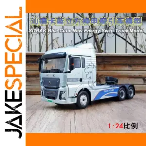 Imagine owning this beautifully crafted 1:24 scale diecast Shandeka 513 Blue Cube Electric Tractor GXEV. Its sleek, modern design features a pristine white exterior accented by vibrant blue and orange details, catching the eye instantly. The aerodynamic cab has a smooth, curved windshield bordered in black, complemented by realistic side mirrors. Subtle contour lines, decals, and panel details add authenticity, making it perfect for collectors or display enthusiasts. The dark gray front grille, stylish headlights, and ventilation features highlight its realistic craftsmanship. With six detailed wheels, this model perfectly captures the essence of a high-end scaled-down replica. Its compact size makes it a perfect addition to any collection or display, showcasing fine design and attention to detail.