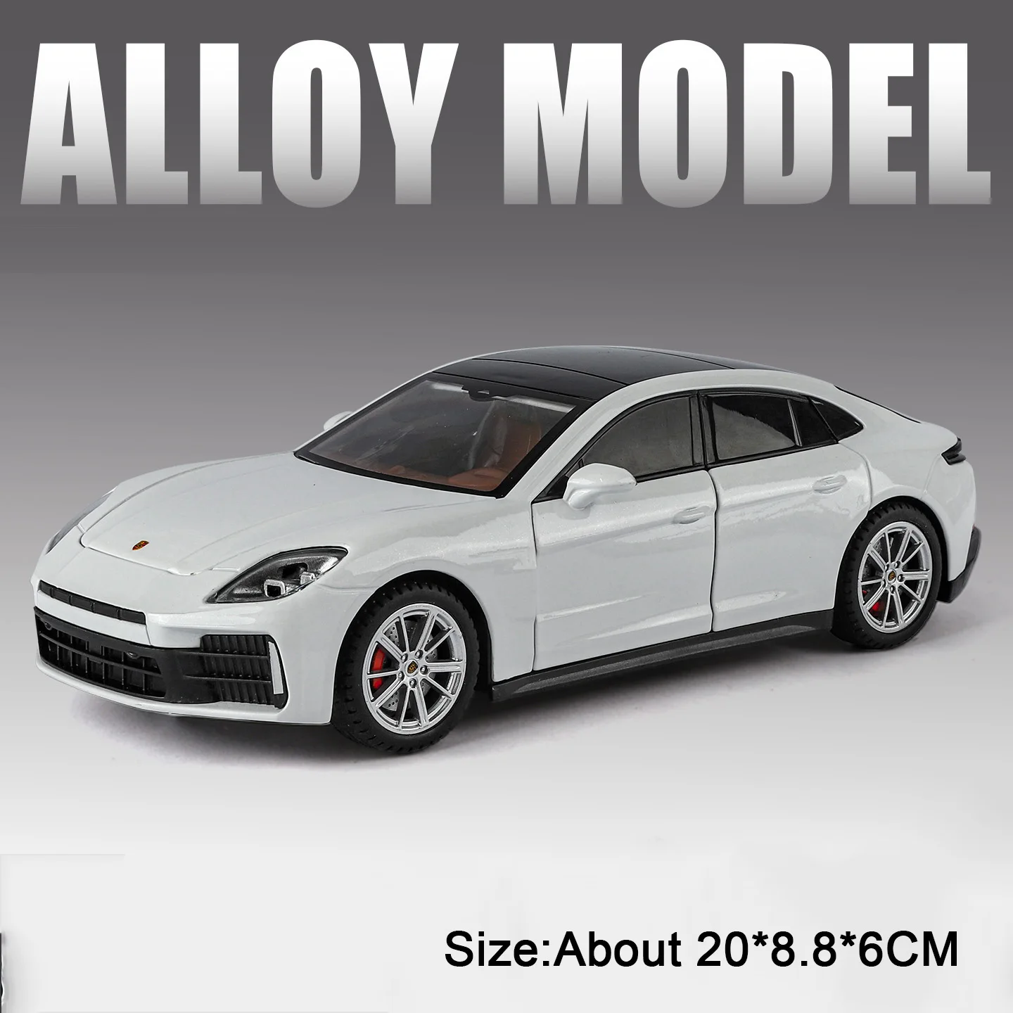 Experience the sleek design and realistic details of this 1:24 scale diecast alloy car model, featuring a durable metal body, plastic chassis, and rubber tires. Available in striking colors such as green, golden, purple, black, silver, and white, this high-simulation collectible measures approximately 19 x 8 x 6 cm or 20 x 8.8 x 6 cm. It boasts functional gull-wing doors that open, along with pull-back movement, and integrated sound and light effects for an authentic experience. Perfect for display, collection, or as a gift, it combines craftsmanship with entertainment in a strong, realistic package. Batteries are included.