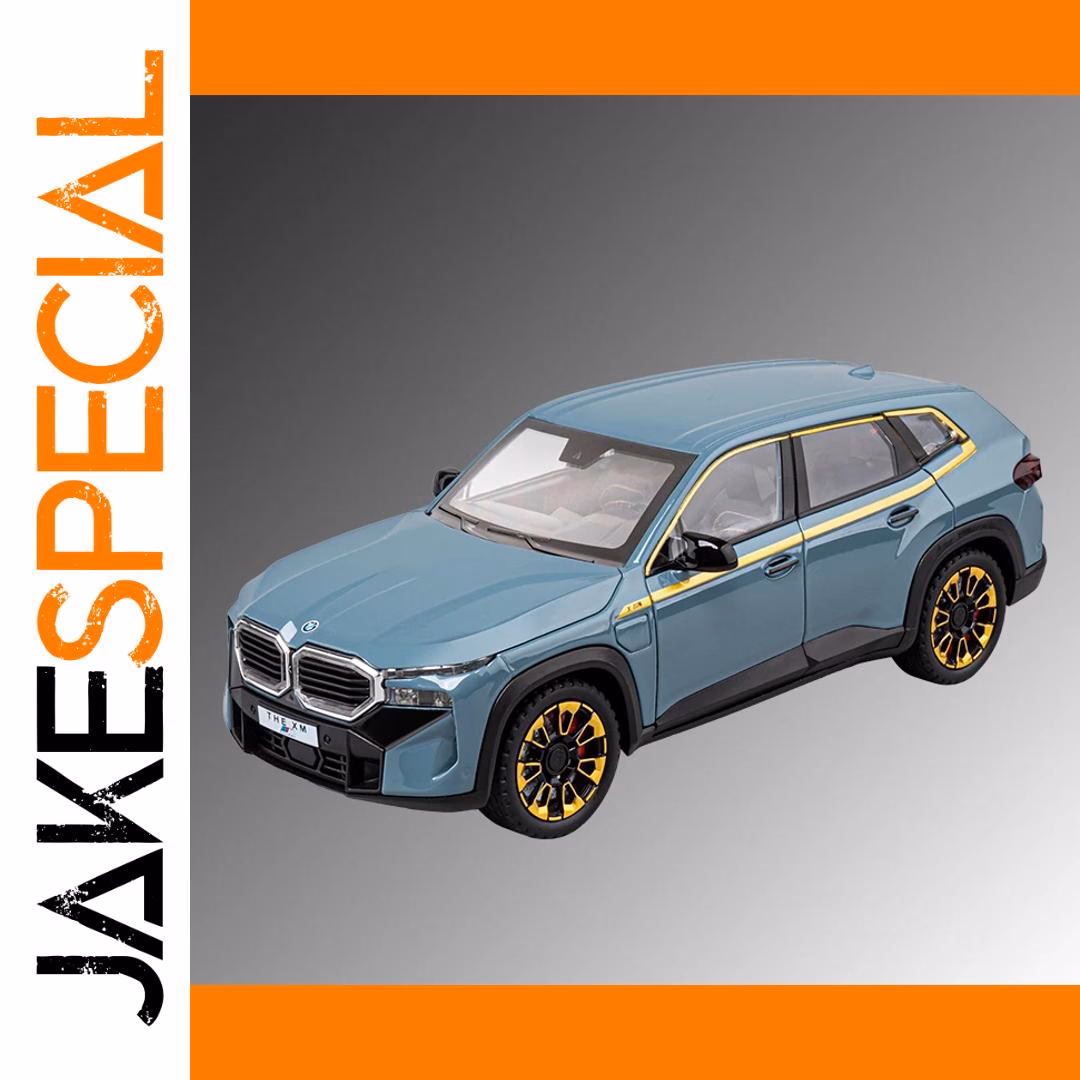 Step into the world of miniature luxury with this stunning 1:24 scale diecast alloy SUV model. Perfect for collectors and enthusiasts, this detailed replica showcases a sleek, modern design in a vibrant light blue finish. Its realistic exterior captures sharp body lines, a distinctive double kidney grille with chrome accents, and angular headlights with clear lenses. The model features functional door-opening mechanisms, adding to its authentic appeal, along with highly detailed black side mirrors and window trim. The wheels have a sporty multi-spoke design with black and vibrant yellow accents, enhancing its dynamic look. Integrated sound and light effects bring this miniature to life, making it an impressive display piece or a thoughtful gift for car lovers.