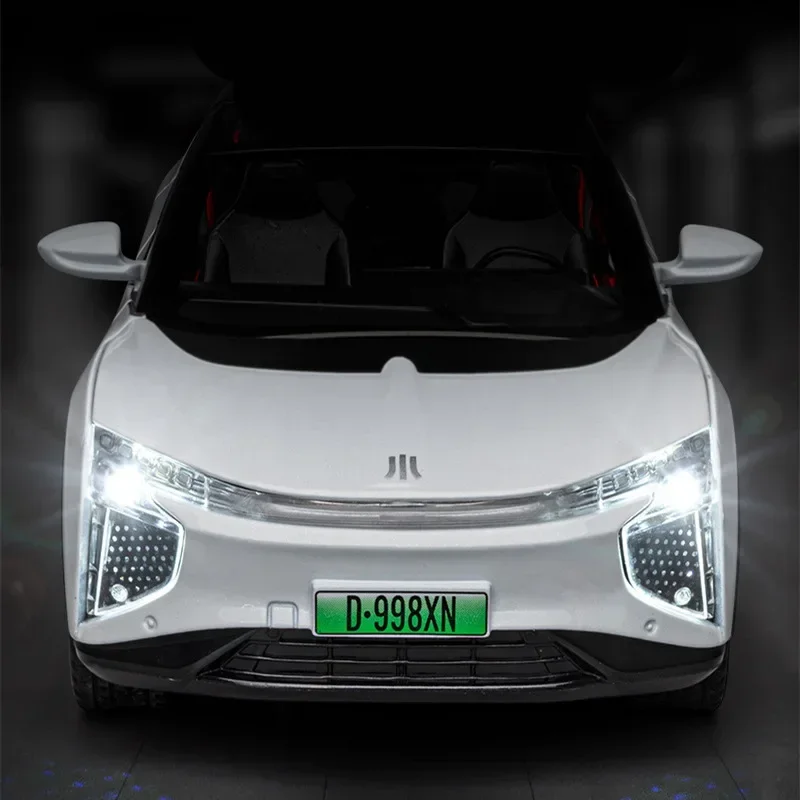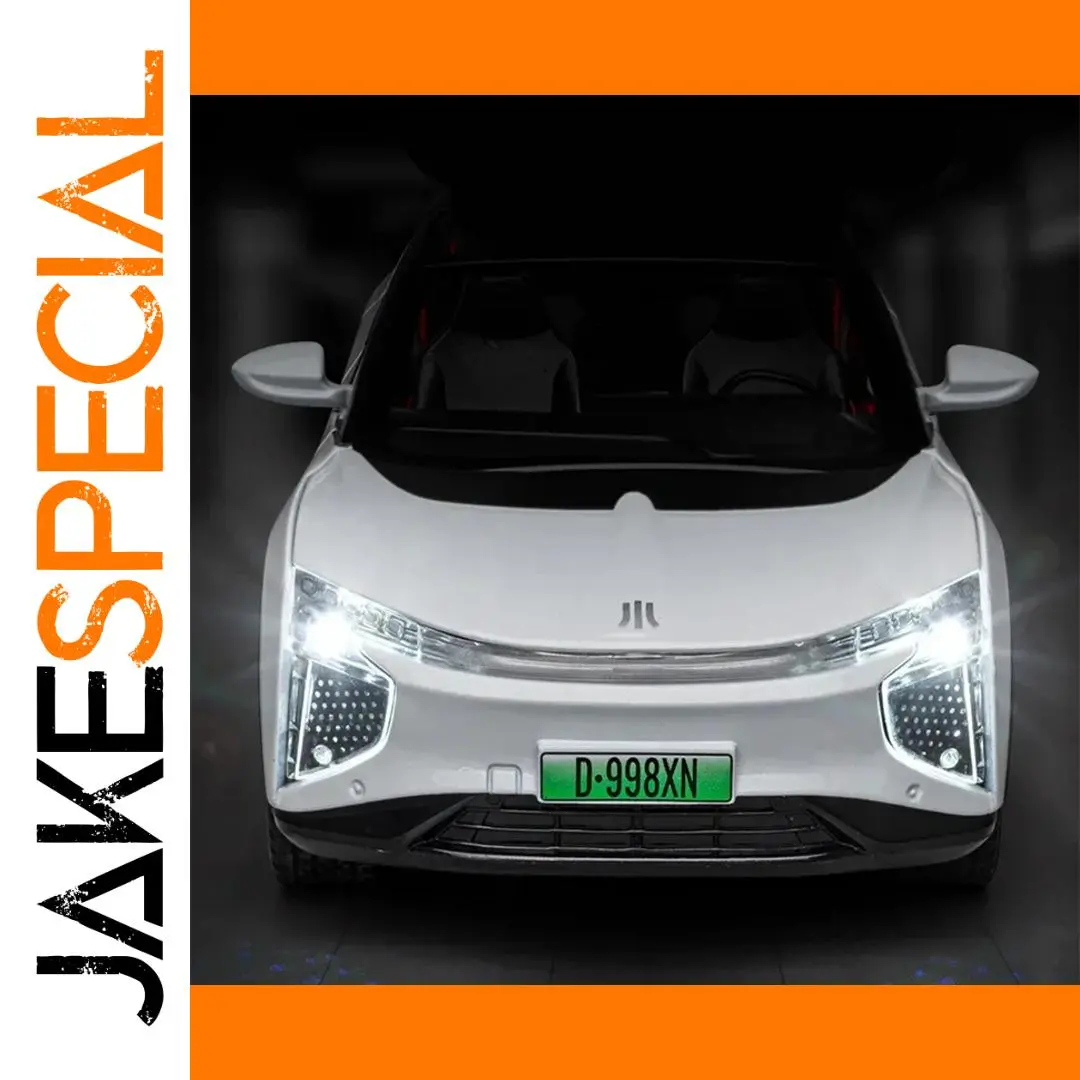 Bring a touch of futuristic elegance to your collection with this highly detailed 1:24 scale diecast alloy SUV model. Crafted from premium alloy and plastic materials, it showcases a sleek, minimalist white body with smooth, aerodynamic lines. The front features a modern-style grille area with a subtle indentation, complemented by bright LED-style headlights with intricate lenses, adding realism and high-tech appeal. The large, curved panoramic windshield seamlessly integrates into the vehicle’s streamlined design, offering a clear view into the interior, which includes two seats and headrests. The side mirrors are elegantly simple and matching in white, while the black grille pattern on the lower bumper adds contrast. This model’s realistic simulated sound and lighting functions make it a perfect display piece or gift for enthusiasts who appreciate sophisticated design.