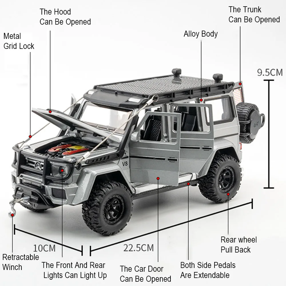 Adding this realistic off-road SUV replica to your collection means owning a piece of adventure and craftsmanship. Its detailed design, functional features, and durable materials make it a perfect gift or display item. Whether you’re a passionate collector or simply an enthusiast of rugged vehicles, this model promises quality, authenticity, and excitement. Imagine showcasing it on your shelf or using it as an impressive playpiece—this G550 4X4 will be a captivating addition to any collection. Don't miss the chance to own a finely crafted, high simulation model that truly embodies the spirit of adventure.