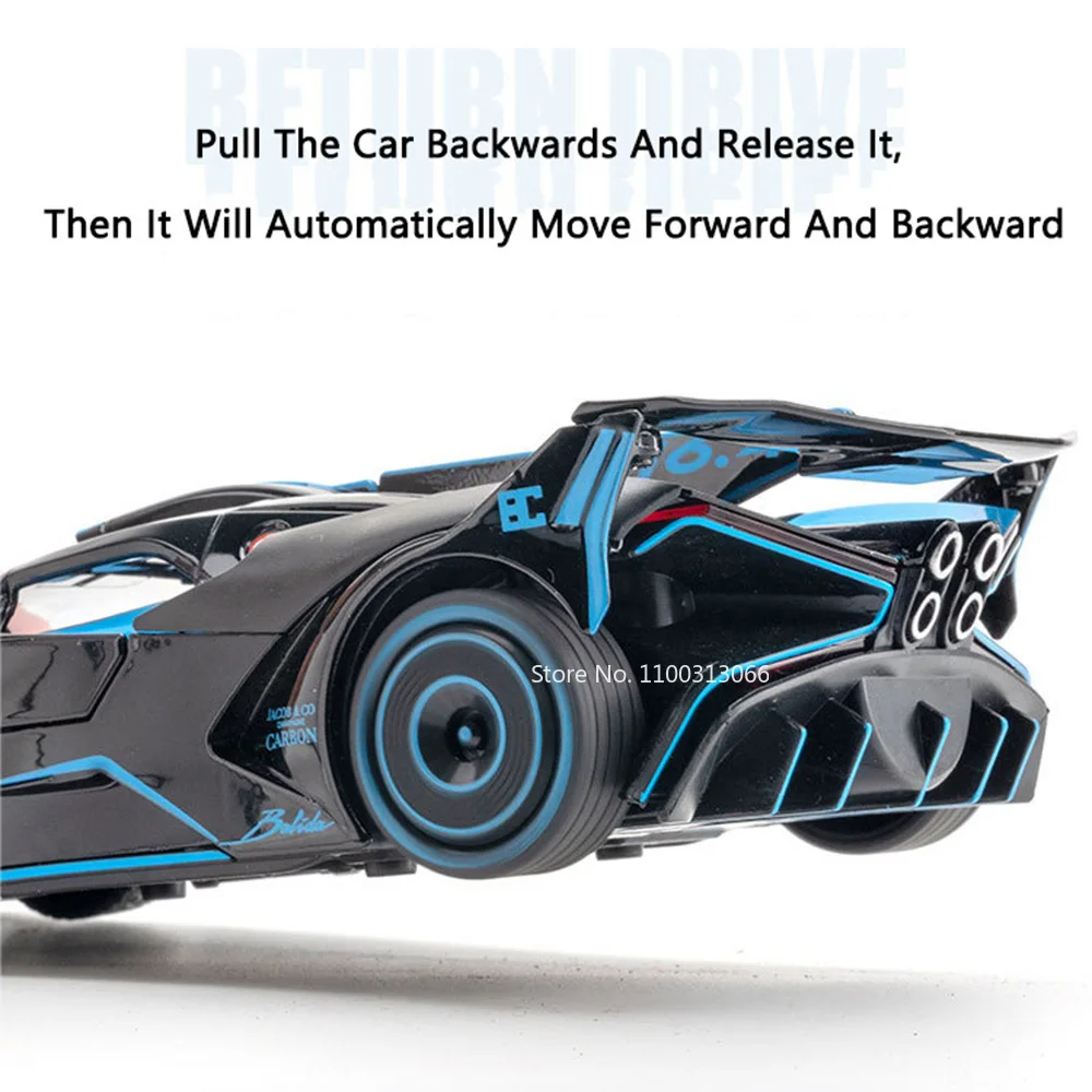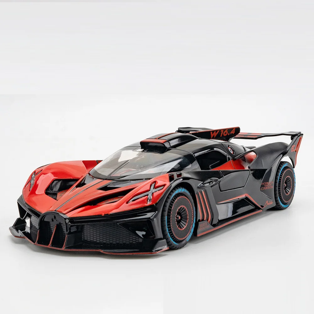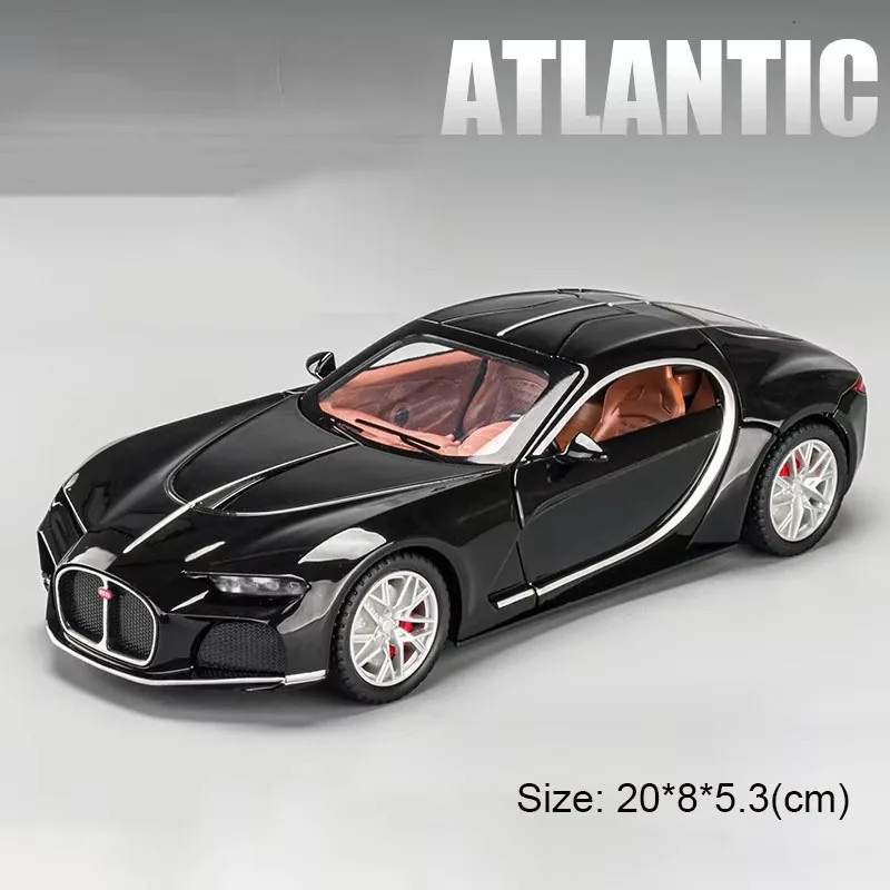 Experience the thrill of high-performance racing with this meticulously crafted 1:24 scale sport car model. Made from sturdy alloy, its sleek, aerodynamic design features sharp angles and intricate detailing, reflecting the elegance of real racing vehicles. The glossy, vibrant finish in bold colors like Bolide Blue, Red, Yellow, or Atlantic Black, White, Red provides an eye-catching visual while the precise craftsmanship highlights realistic elements such as openable doors, detailed headlights, and vent accents. Its durable alloy body ensures longevity, making it a perfect collectible or display piece. The included light and sound functions, powered by batteries, add a dynamic touch, making it engaging for enthusiasts and collectors alike. This model invites you to imagine owning a genuine racing legend in miniature form.