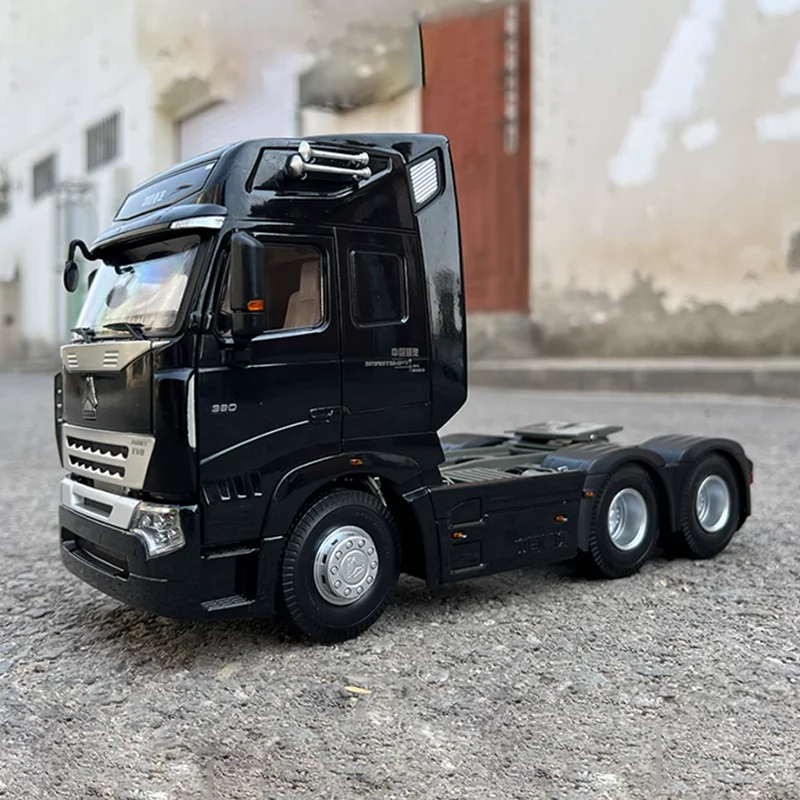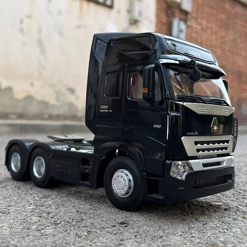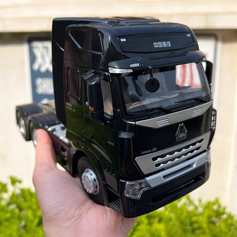 Experience the realism of the 1:24 scale HOWO A7 tractor head diecast model, crafted from alloy and ABS materials with precise detailing and a sleek black finish. Measuring approximately 29 cm long and 10.5 cm wide, this collector’s piece features opening left and right doors, rotating wheels, and intricate surface textures that mimic the bold and aerodynamic design of the original truck. Perfect for display, gifting, or showcasing in a collection, this high-quality model is suitable for enthusiasts aged 14 and above. Its modern appearance highlights sharp curves, defined edges, and fine sculpting, making it a sophisticated and striking addition to any automotive model collection.