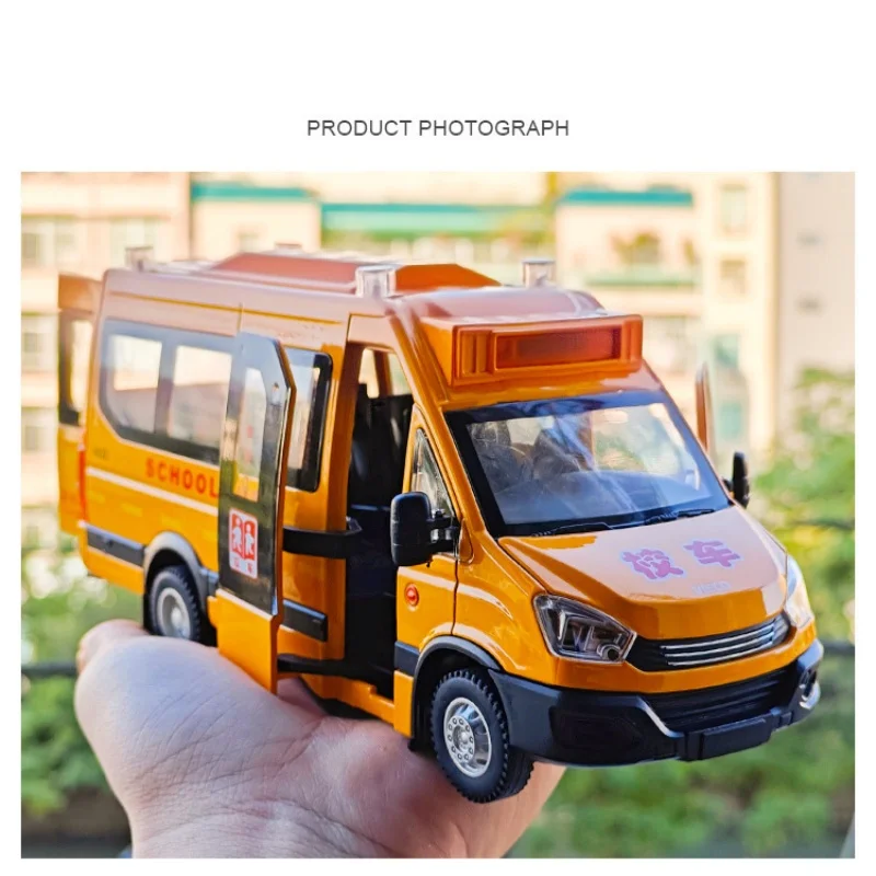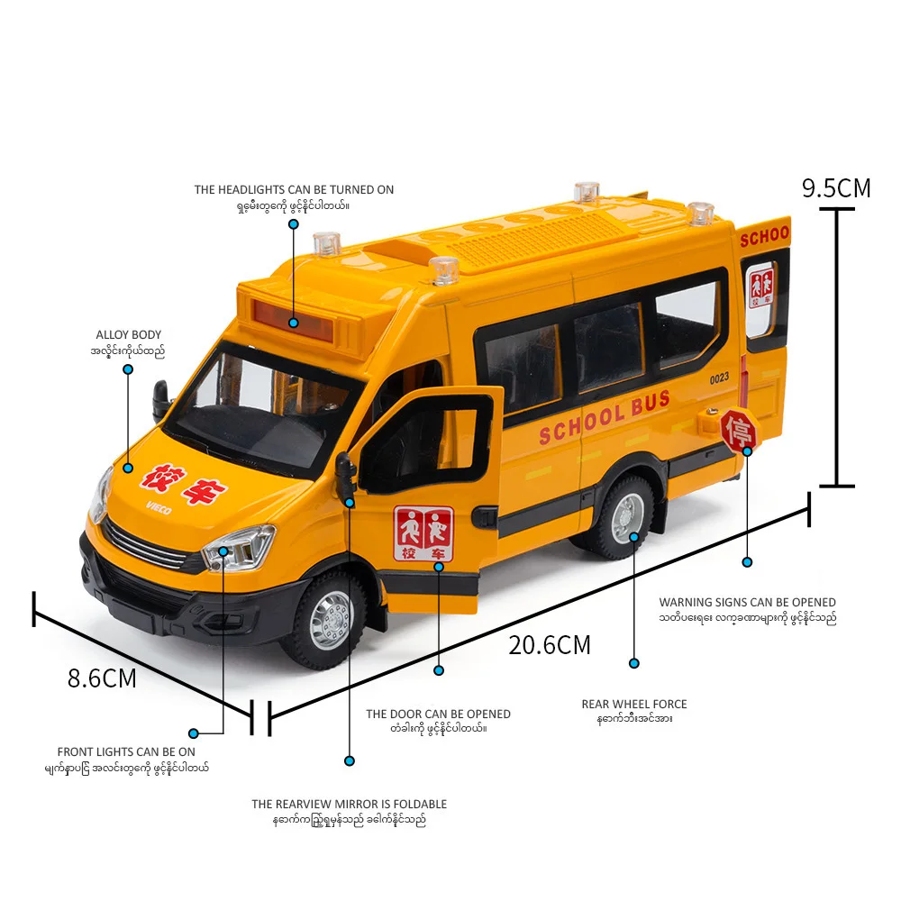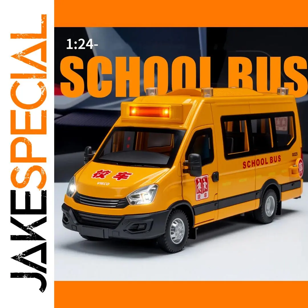 Experience the vibrant charm of this meticulously crafted 1:24 scale alloy diecast model of an Iveco school bus and ambulance. Made from durable alloy and plastic, it features a bright yellow body accented with realistic red and black details, capturing the lively essence of emergency vehicles. The large black-framed windows provide a glimpse into the detailed interior, while the roof’s transparent lights and siren add authenticity. Its silver wheels with intricate hubcaps give a realistic touch, and the finely molded grille and door panels enhance its realism. This model is perfect for collectors and enthusiasts who appreciate high-quality craftsmanship and vivid visual aesthetics, bringing a fun and lively touch to any collection or display.