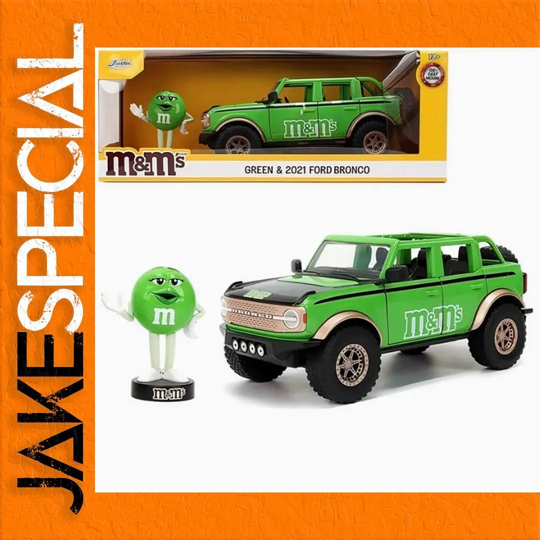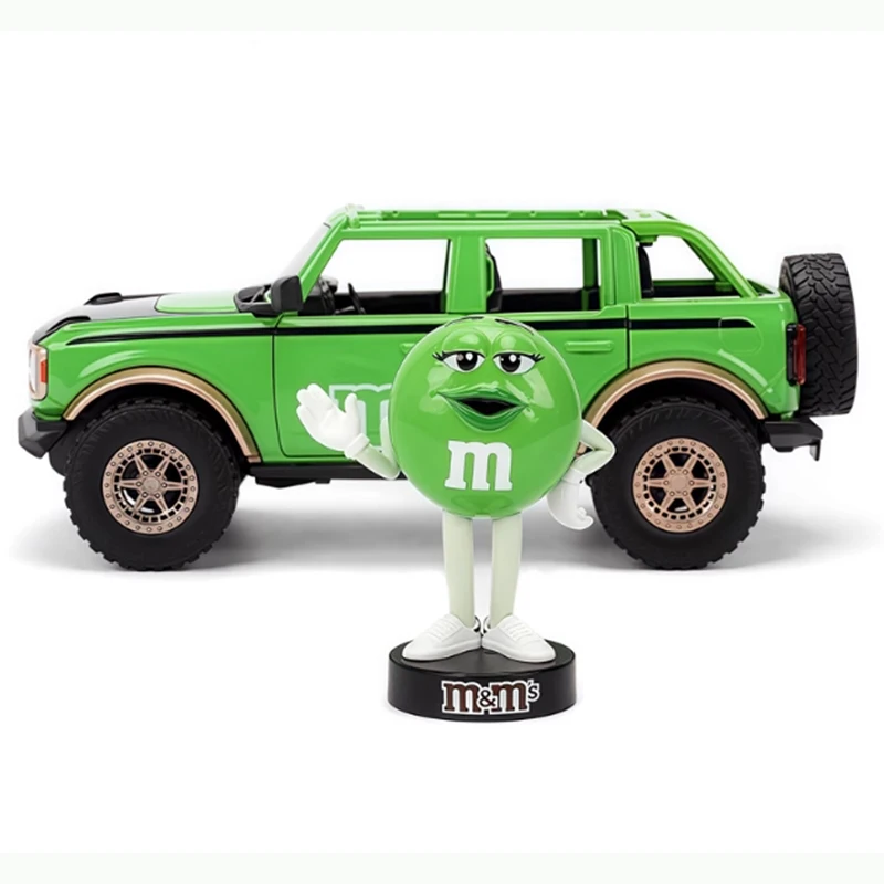 Experience the thrill of owning a stunning 1:24 scale diecast model of the vibrant Green Ford Bronco. This eye-catching piece is brought to life with bold white M&M's branding on both sides, creating an unforgettable visual impact. Its glossy finish beautifully highlights the sleek contours, while the metallic grille, engraved with “Bronco,” adds a layer of authenticity that captures the essence of this classic vehicle. Accompanied by a charming green M&M's figurine, this model brings a playful touch to any collection, making it a perfect blend of nostalgia and aesthetics. Made from durable metal and plastic, this piece ensures lasting quality for years to come.