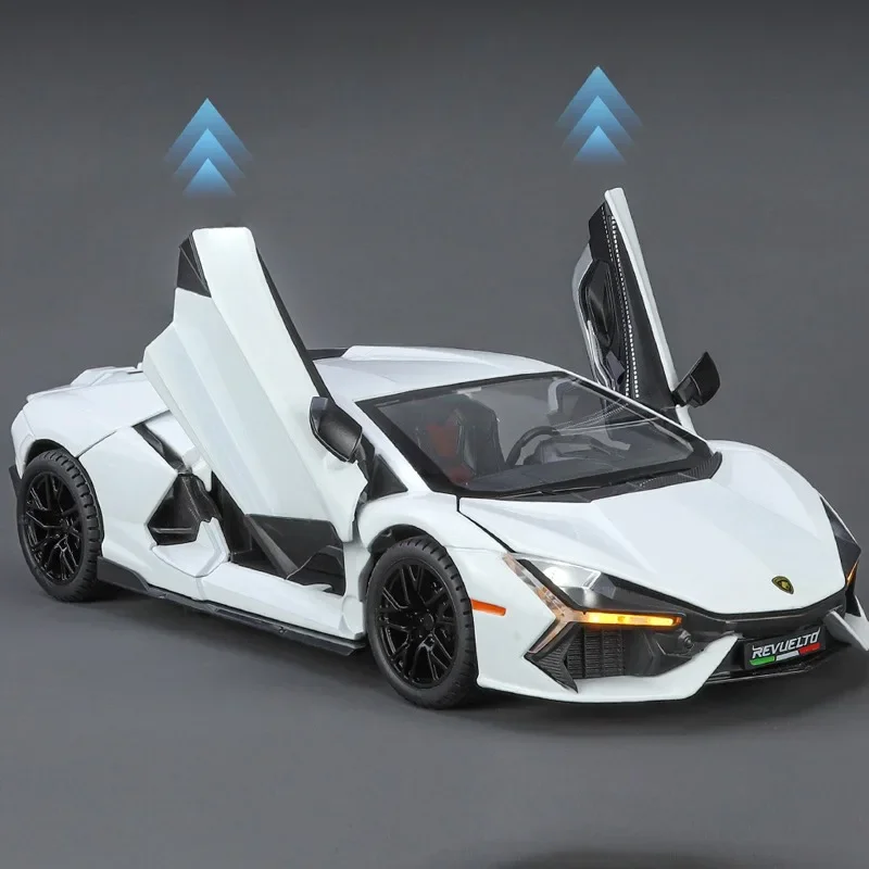 Imagine owning a stunning miniature replica of the iconic Lamborghini Revuelto, crafted with meticulous detail to captivate car enthusiasts and collectors alike. This 1:24 scale diecast model combines realism with durability, featuring sleek metal construction and authentic sound and light effects that bring the supercar to life. Perfect for display or play, this miniature vehicle will impress both children and adult collectors looking to add a touch of luxury to their collection. Its high-quality design ensures longevity, making it an ideal gift or personal keepsake. Envision the excitement of having this detailed replica prominently displayed, instantly elevating your space or collection.