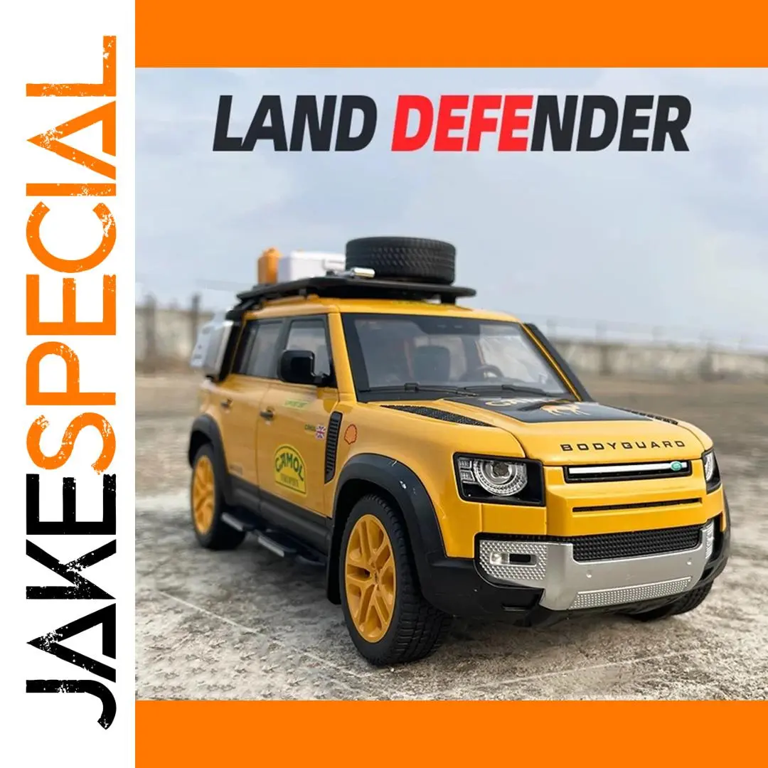 Immerse yourself in the rugged charm of this detailed 1:24 scale Land Rover Defender and Wrangler diecast alloy car models. Crafted with precision, the models showcase a vibrant yellow finish, accented by bold black decals and trims, capturing the essence of a high-performance off-road vehicle. The sturdy metal body, combined with a plastic chassis and rubber tires featuring intricate tread patterns, ensures durability and authentic appearance. The Defender measures approximately 21 cm in length, 8.8 cm in width, and 10 cm in height, while the Wrangler is around 20.8 x 9 x 9 cm. Functional doors open smoothly, and the pull-back mechanism adds to the realism. Light and sound features further enhance the experience, making it a perfect collectible for enthusiasts and an exciting toy for younger collectors alike.
