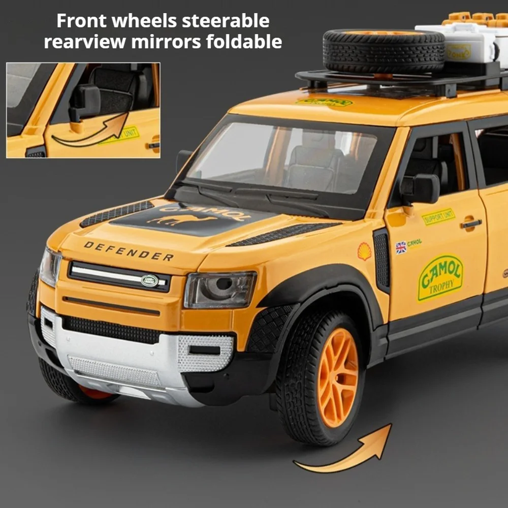 Imagine adding this realistic and detailed Land Rover Defender or Wrangler to your collection or display—its rugged aesthetic and functional features make it a true standout. Whether for personal enjoyment or as a unique gift, this model combines excellent craftsmanship with engaging features that will capture attention. Don’t wait—enhance your collection today with this highly durable, visually striking alloy model. Its realistic design and interactive features promise many hours of admiration and fun. Make it yours now and enjoy the thrill of owning such an impressive scaled car.