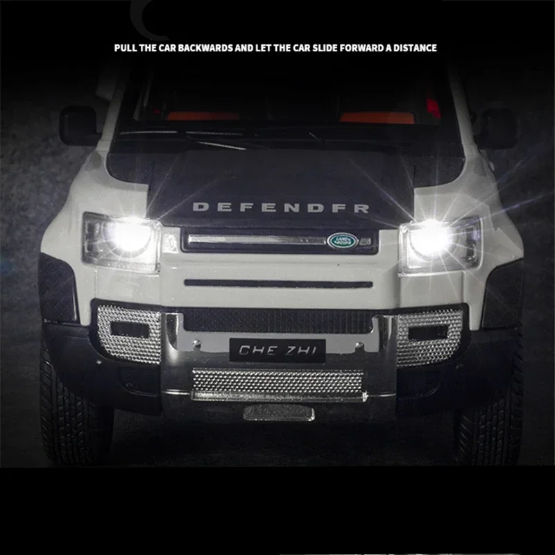 - Finished in a matte olive green color, with textured surface details that mimic the rugged exterior of an actual Land Rover Defender SUV.