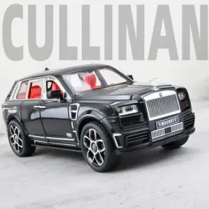 Experience the thrill of owning this exquisite diecast SUV model, meticulously crafted in a 1:24 scale. Made from durable zinc alloy, it captures the sleek elegance of a high-end luxury vehicle with a glossy black or white finish. Its boxy, robust shape, refined with sharp, clean lines and a slightly rounded roof, exudes sophistication. The detailed front grille features tall, narrow vertical slats, complemented by a small silver Spirit of Ecstasy hood ornament, emphasizing its premium design. Transparent windows reveal bold red interior seats, contrasting beautifully with the exterior. Suitable for collectors and enthusiasts over 14, this model includes intricate door handles, side vents, and modern five-spoke alloy wheels with textured rubber tires, offering realism and style in one compact package.