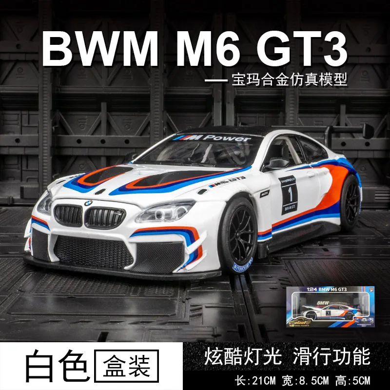 Experience the thrill of racing with the 1:24 scale M6 GT3 Rally Racing car model, crafted from durable alloy material. With dimensions of 21 cm long, 8.5 cm wide, and 5 cm high, this stunning model features an openable design that reveals an intricately detailed racing cockpit. The striking blue color, complemented by black and white accents, enhances its realistic appeal. This multi-functional model offers force control with a flash function and is perfect for adult collectors. Whether displayed on a shelf or used as a standout piece in your collection, this model is a must-have for racing enthusiasts.