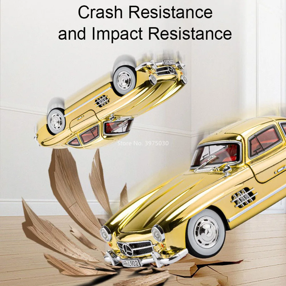 Picture yourself admiring this detailed replica in your collection, its shimmering iridescent paint and authentic features sparking admiration from friends and visitors alike. Whether you're a passionate collector or looking for a sophisticated gift, this model combines craftsmanship, style, and interactive features that bring the spirit of the 1950s Mercedes-Benz 300SL to life. Its durability and functional design ensure lasting enjoyment, making it an enduring centerpiece that celebrates automotive history. Add this exquisite model to your collection now and relive the glamour of a vintage icon every day.