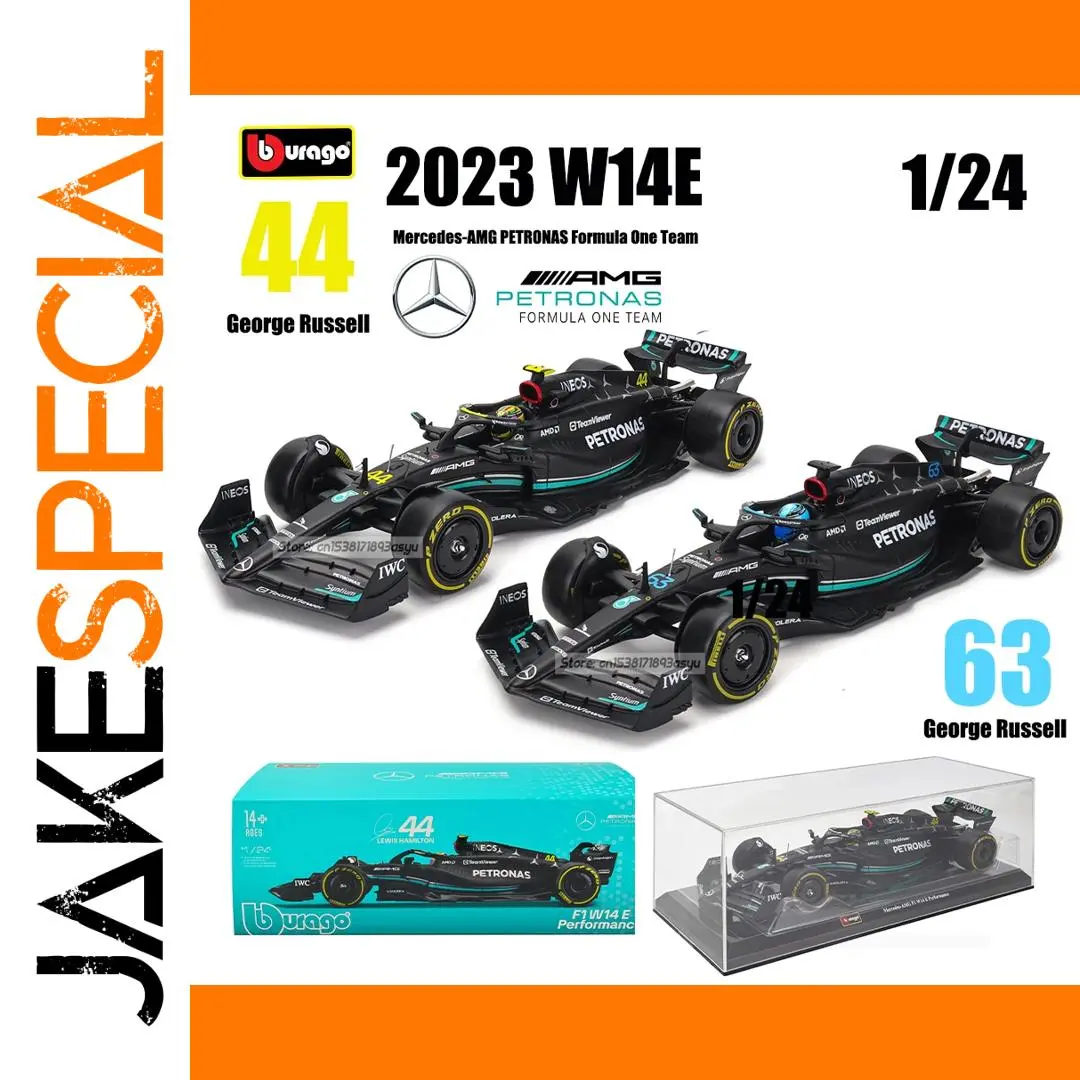 Experience the thrill of Formula 1 racing with this meticulously crafted 1:24 scale die-cast alloy model of the 2023 Mercedes-Benz W14, featuring the sleek, aerodynamic design inspired by the cars driven by Lewis Hamilton (#44) and George Russell (#63). The model showcases a high-quality metallic finish, precise detailing on the front and rear wings, side pods, and suspension, reflecting the cutting-edge performance of F1 cars. Suitable for collectors aged 14 and above, it is a non-motorized, display-ready replica made from durable metal, available in various liveries from the 2023 season. A perfect addition for any motorsport enthusiast or collector’s display.
