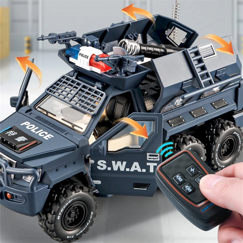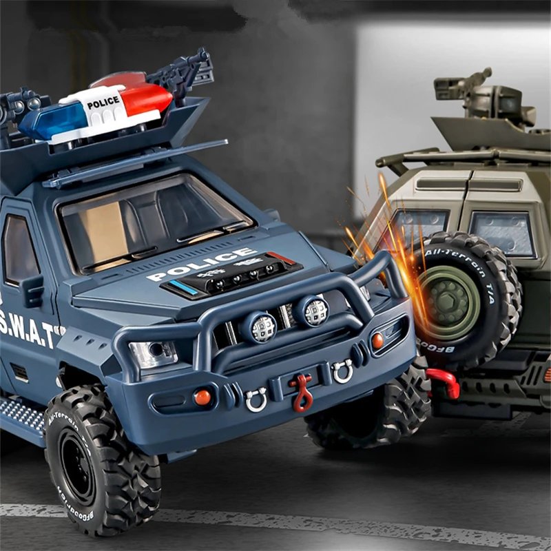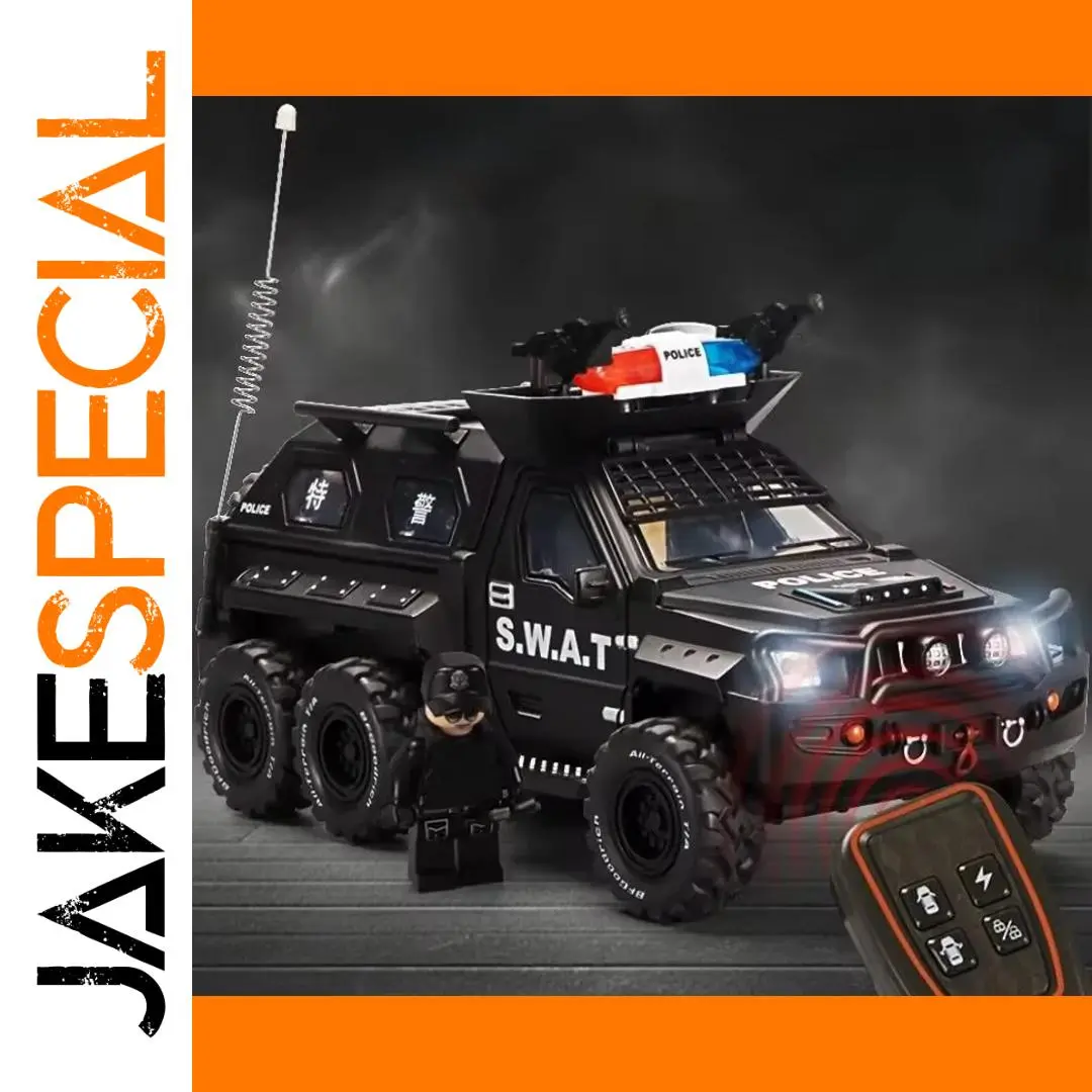 This realistic 1:24 scale armored police car toy