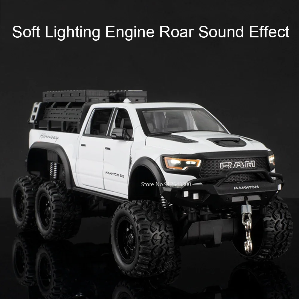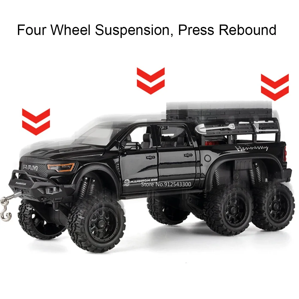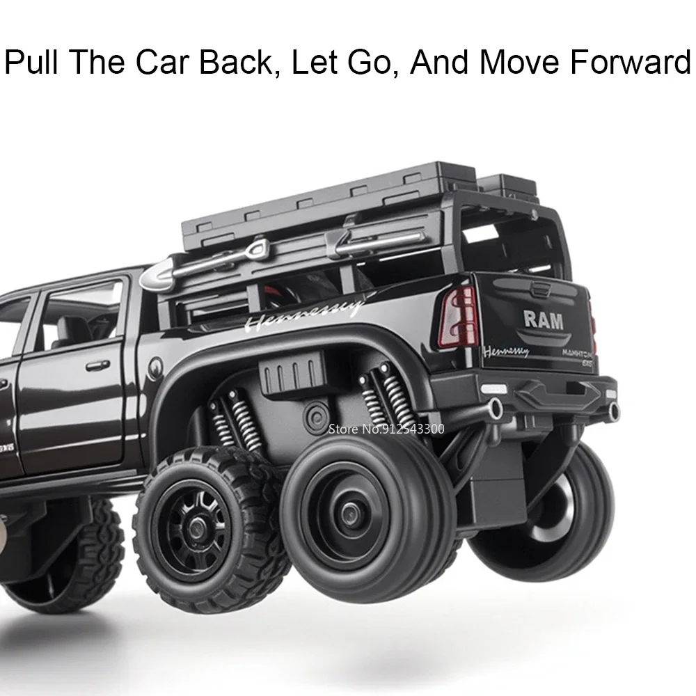 - The model has a metal body and plastic chassis with durable rubber tires for realistic off-road appearance.
