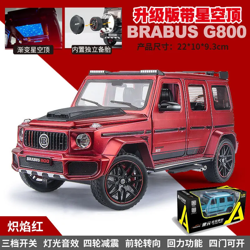 Experience the thrill of owning a meticulously crafted, realistic off-road vehicle with this premium 1:24 scale diecast car. Made from zinc alloy with advanced paint technology, it beautifully replicates the texture and appearance of a real rugged SUV. Every detail, from the engine bay to the interior, has been carefully designed to evoke authenticity. The model features functional elements like operable doors and windows, a steering linkage for front-wheel steering, and a simulated shock absorber system that adds to its realism. Bright LED lights including headlights, turn signals, and rear lights enhance the visual appeal. Perfect for collectors and enthusiasts, this mini vehicle elevates any display with its durability and detailed craftsmanship.