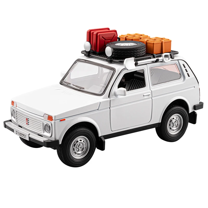 Experience the thrill of off-road adventure with this 1:24 scale diecast alloy model vehicle, crafted from durable metal. Featuring a sleek and boxy SUV design in vibrant white, black, or red, it boasts openable doors, realistic sound, and light effects that bring the model to life. The detailed contouring, pronounced wheel arches, and textured rubber tires mounted on silver rims showcase its rugged off-road capability, perfect for collectors and enthusiasts. Suitable for ages 14 and above, this model seamlessly combines realistic styling with interactive features, making it an impressive display piece or a gift for those who appreciate meticulous craftsmanship in diecast collectibles.
