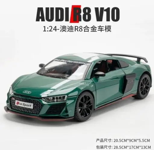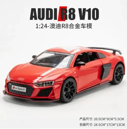 - Authentic 1:24 scale diecast model with a robust metal construction ensures durability and realistic appearance. The detailed body replicates the actual R8 V10 Plus with precision.