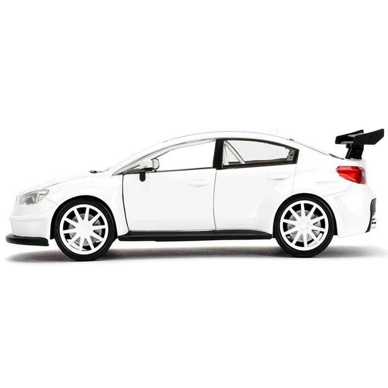Experience the thrill of owning a highly detailed replica of the iconic Subaru WRX STI with this 1:24 scale diecast model. Crafted from alloy and plastic, this model boasts a sleek, aerodynamic shape in fresh white, capturing the sporty spirit of the real car. Open the hood and discover intricately detailed engine components that mirror the performance-oriented design of the original. The open driver’s door reveals a meticulously crafted interior, complete with dashboard, steering wheel, and seats. Large black rear wing spoiler, proportionate side mirrors, and realistic multi-spoke white wheels with treaded tires give this model a dynamic, racing-inspired aesthetic. Perfect for collectors and enthusiasts, it adds a touch of high-performance style to any display. Made for ages 14 and up, it’s a true showcase of technical craftsmanship and visual appeal.