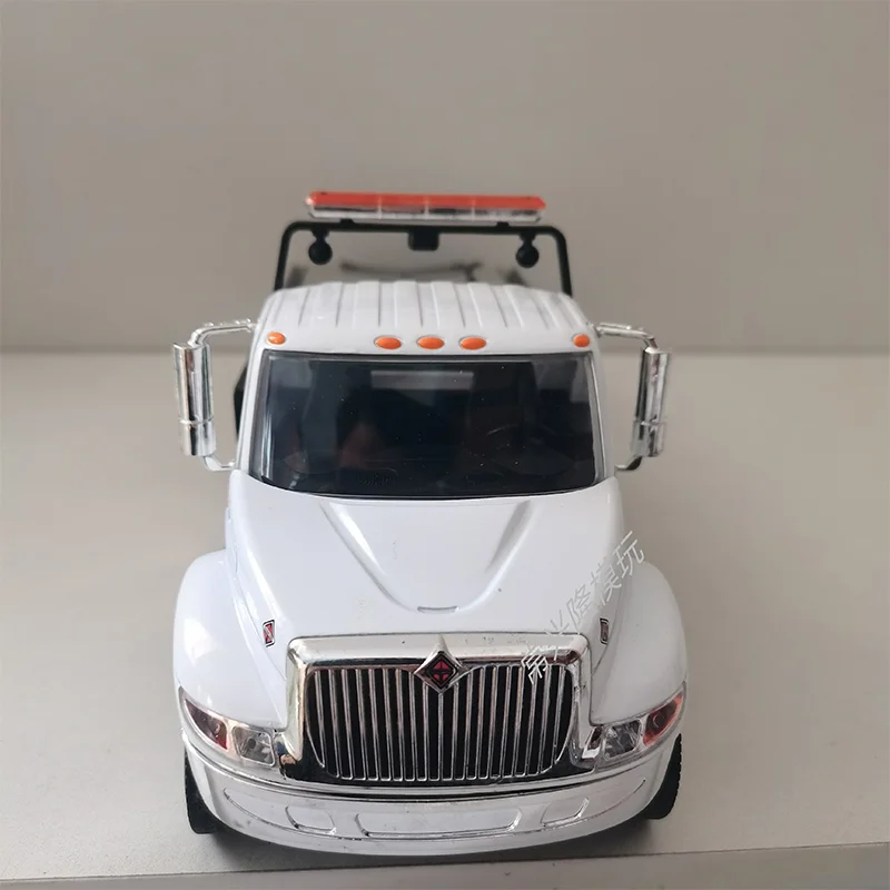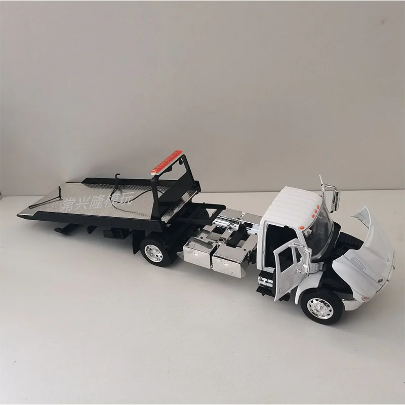 Bring your collection to life with this highly detailed 1:24 scale diecast truck trailer model, measuring 33 cm long, 12 cm wide, and 10 cm high. Crafted from alloy, plastic, and rubber, it features realistic opening side and hood doors, a telescoping flatbed for versatile display, and an adjustable underbody support. The black flatbed includes functional railings and hooks, while the wheels with silver hubcaps add authenticity. With its sleek design, vibrant accents, and precise detailing, this model is perfect for adult collectors seeking a striking, premium addition to their collection. Suitable for ages 14 and up, it offers a blend of craftsmanship and realism.