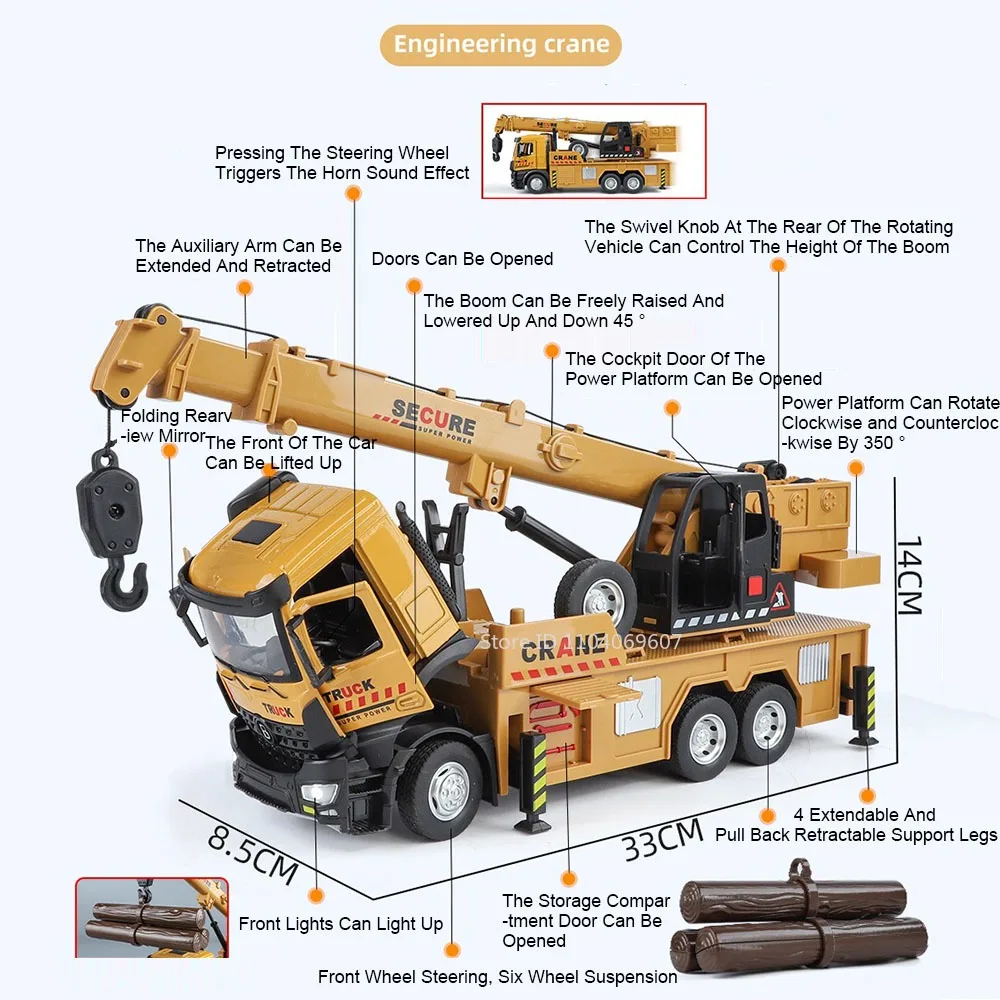 To truly enjoy the craftsmanship of this model, visualize yourself playing or displaying this impressive yellow crane mixer truck, appreciating each detailed feature. Whether for an avid collector or a young enthusiast, this toy promises hours of imaginative fun and is a great addition to any themed collection. Rest assured, its impact-resistant design ensures long-lasting enjoyment, making it a meaningful purchase today.
