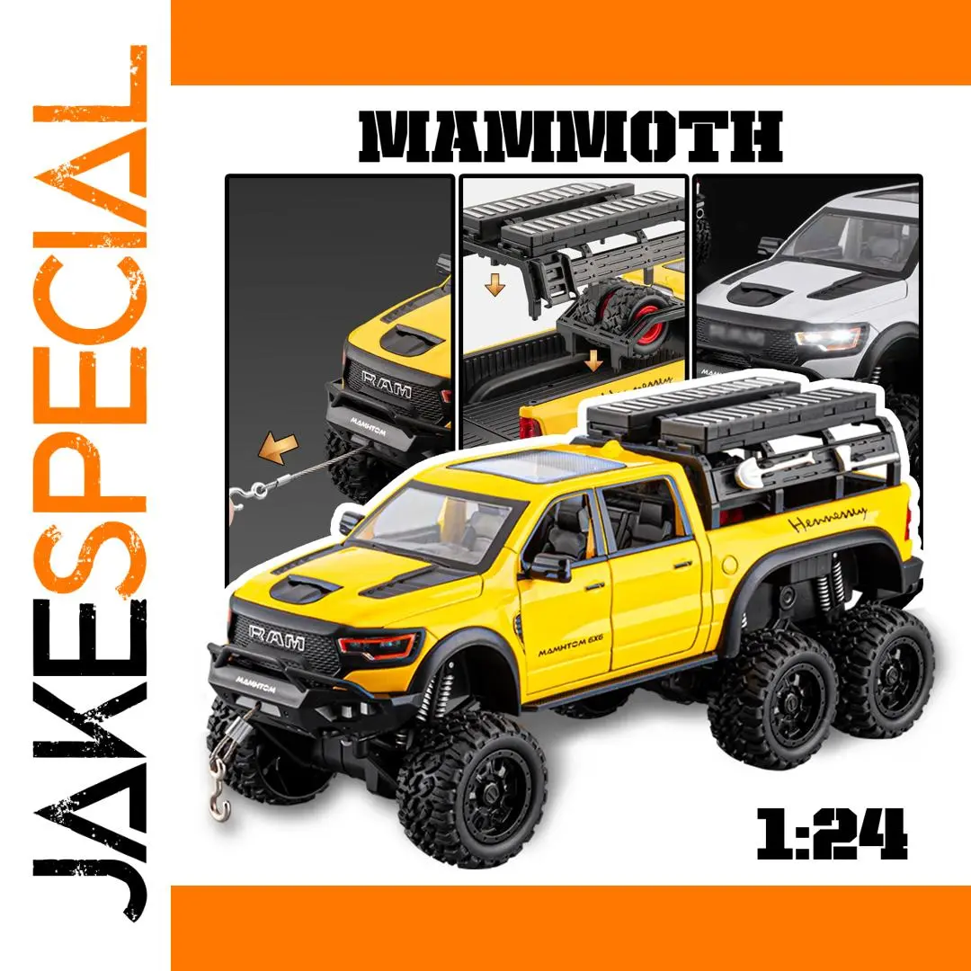 Imagine owning this highly detailed 1:24 scale diecast off-road vehicle, crafted for true enthusiasts. The bold yellow finish, accented with black details, creates an eye-catching contrast that commands attention. Its rugged design combines realism with durability, making it an ideal collectible or display piece. Thoughtfully designed, this model features angular headlights, a prominent black grille with the “RAM” logo, textured off-road tires, and a functional-looking black roof rack. With visible window frames and a customizable side decal reading “Harmony,” this vehicle exudes adventure and toughness. Made of sturdy metal, it offers a premium feel that both collectors and enthusiasts will appreciate. Perfect for display on desks or shelves, it invites you to picture it as part of your collection or gift.