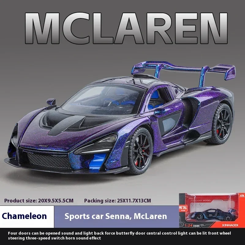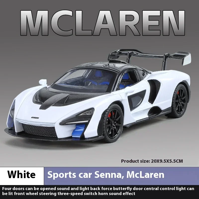 Experience the thrill of racing with this incredible 1:24 Senna Racing Car diecast model. Crafted from high-quality metal alloy, this model highlights a sleek white design adorned with aerodynamic curves and sharp angles. The striking features include prominent headlights with clear lenses and an aggressive front grille, enhancing its sporty character. The car is equipped with sound and light functions, providing an engaging display. Peek inside through the transparent windows to admire the intricately designed cockpit. Available options include multiple colors such as white, purple, and orange, to suit every collector's taste. Perfect for enthusiasts aged 14 and over, this model is a fantastic addition to any collection.