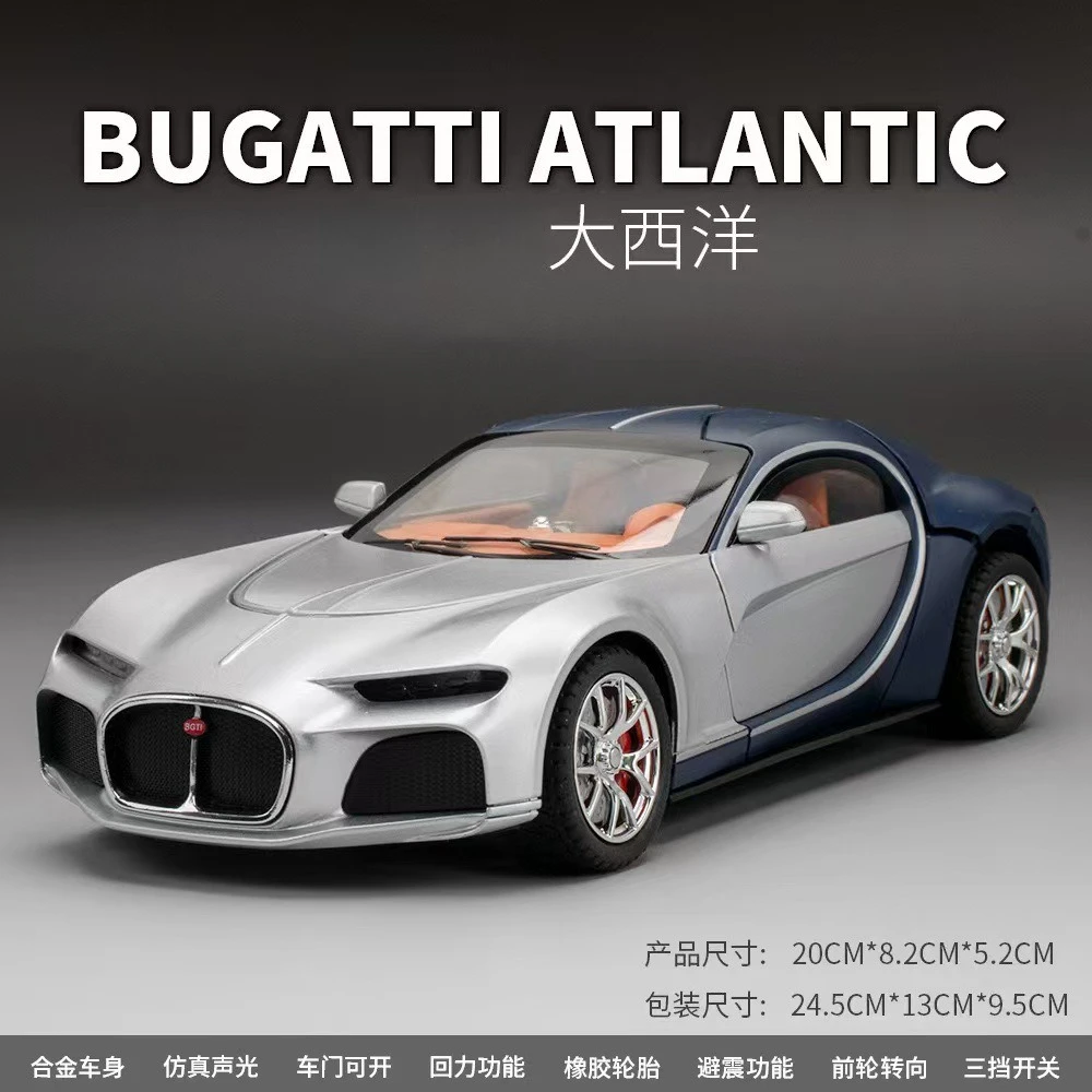 - The 1:24 scale alloy model features a sleek silver body with black accents, capturing the luxury and sporty aesthetic of an authentic high-end car, perfect for display and collection.