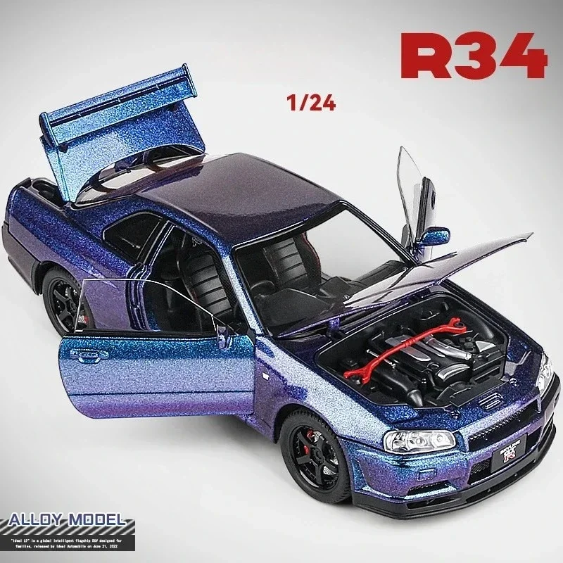 - Made from high-quality metal with transparent plastic windows and detailed interior molded to resemble the real Skyline R34’s cockpit.