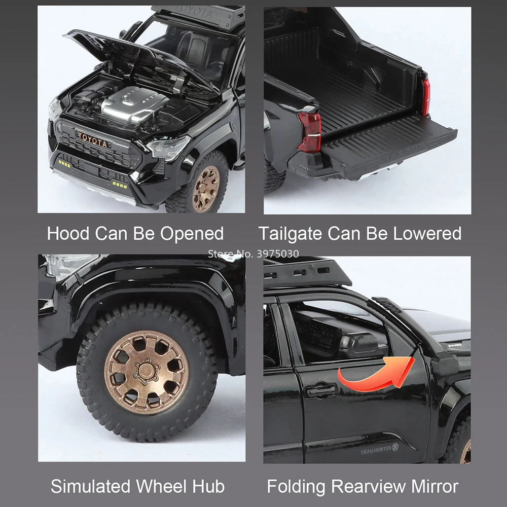 Imagine showcasing this stunning replica in your collection or enjoying it as a detailed display piece. With its realistic design and interactive features, this model truly stands out. It's perfect for those who appreciate craftsmanship and authenticity, making it an ideal gift or personal treasure. Don’t wait — elevate your collection today with this impressive, rugged Toyota Tacoma model and bring the spirit of off-road adventure into your space.