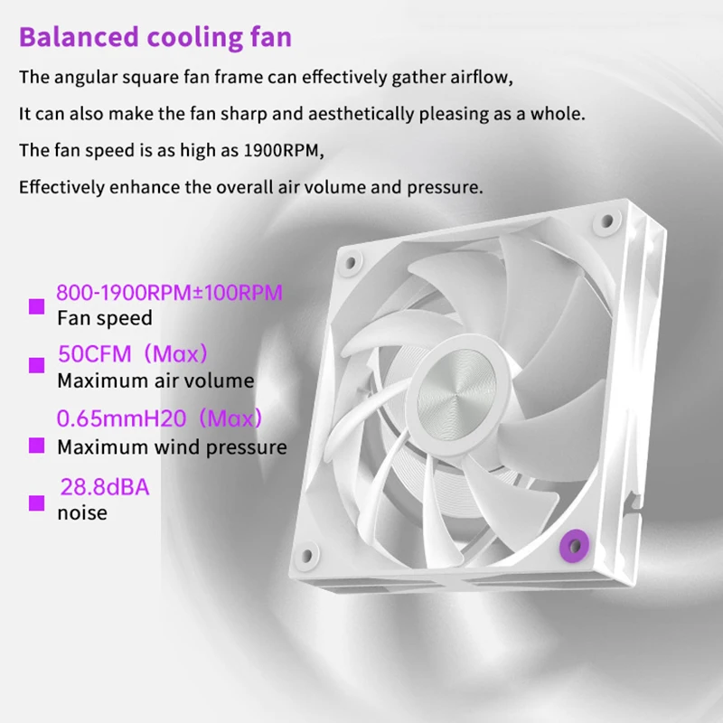 Experience the seamless performance of this this 12cm desktop computer cooling fan, designed to elevate your PC’s cooling efficiency quietly and reliably. Its sleek, modern square design features a matte black finish on the sturdy frame and blades, blending style with durability. The slightly curved blades allocate airflow evenly, ensuring effective heat removal while maintaining low noise levels thanks to advanced mute technology. At the center, a metallic silver hub adds a sophisticated touch that emphasizes its high-tech engineering. Easy to install, this fan fits all desktop cases—new or old—providing a reliable upgrade that improves performance and extends your computer’s lifespan. This is the upgrade your gaming or professional setup needs for quieter, cooler operation.